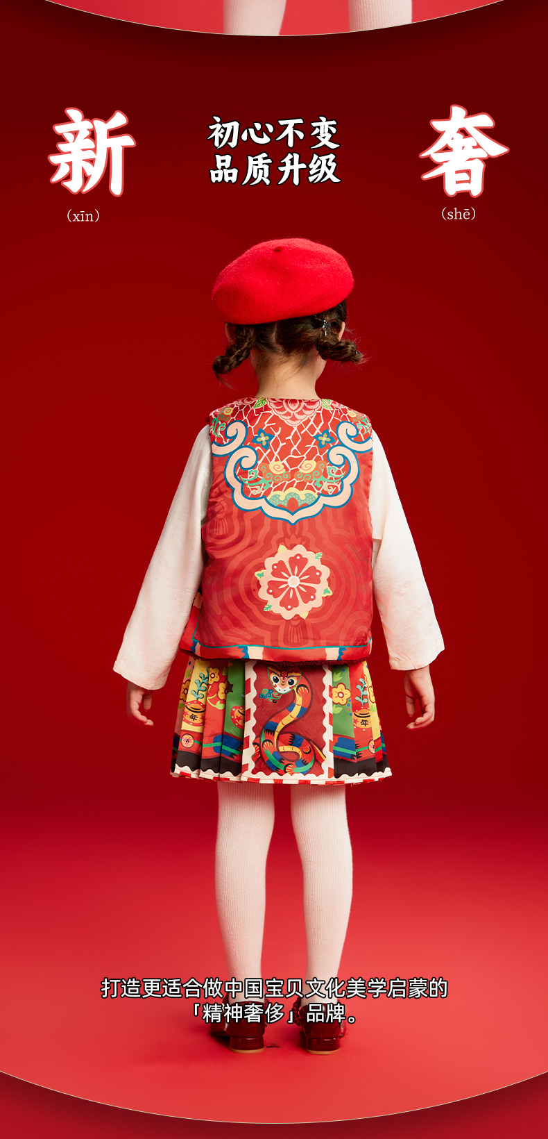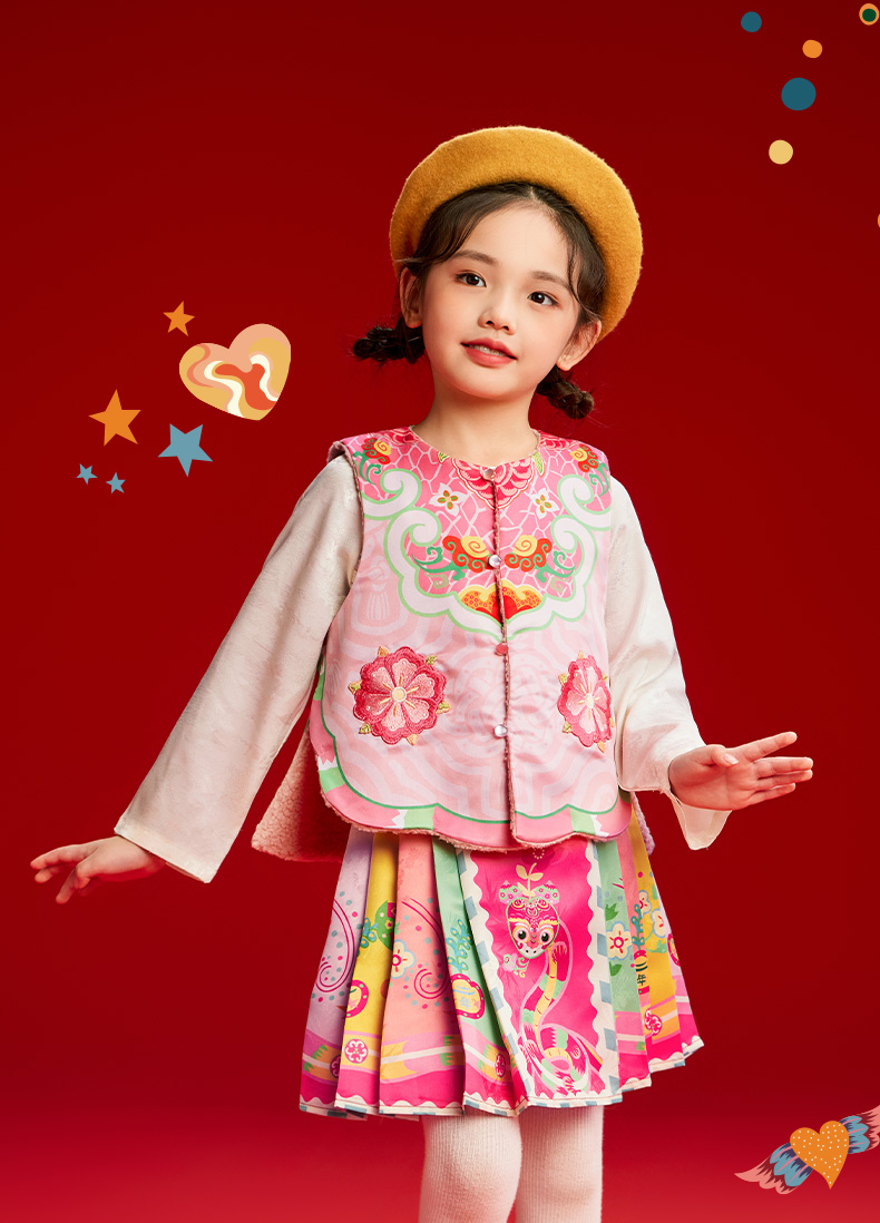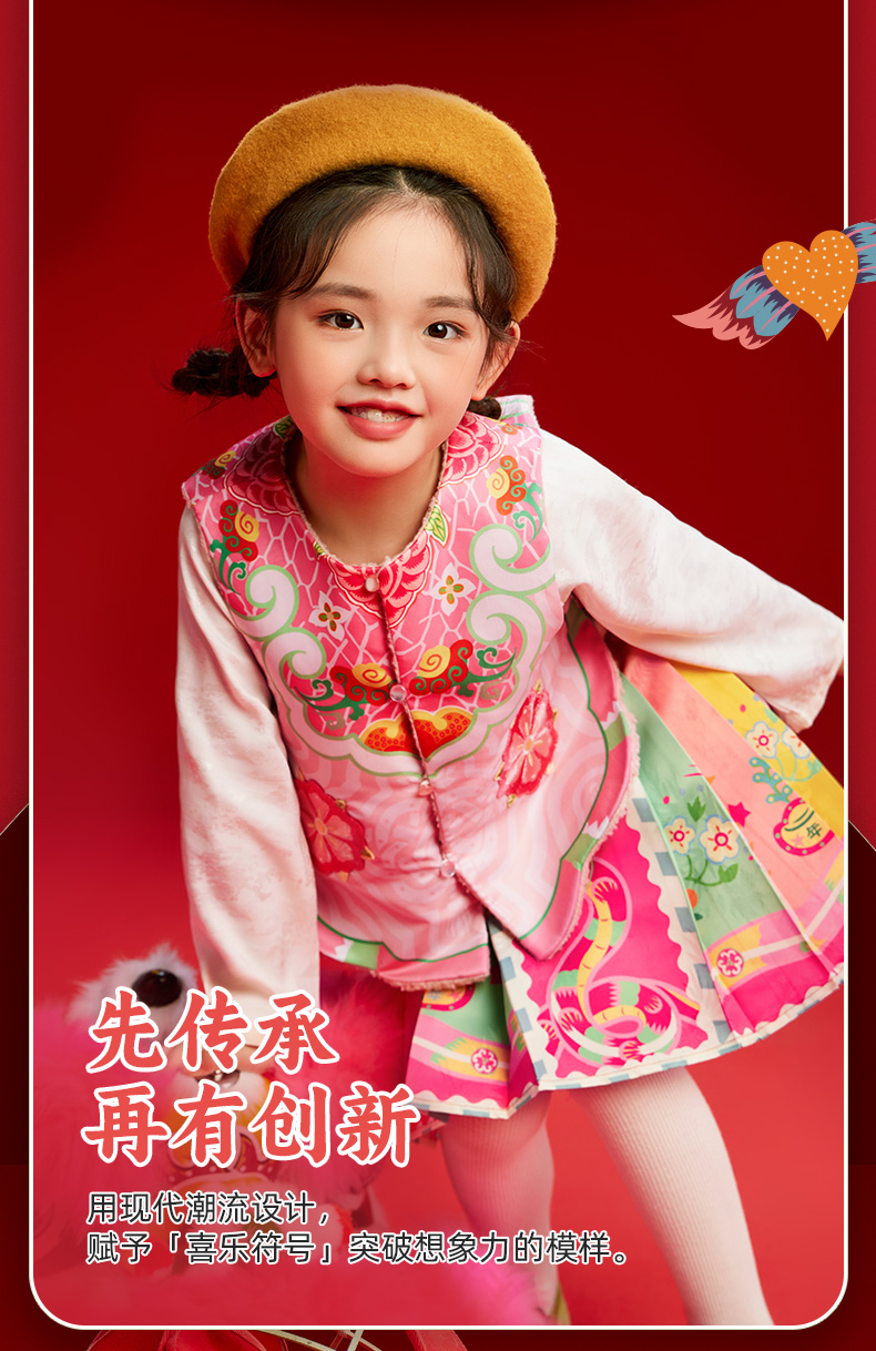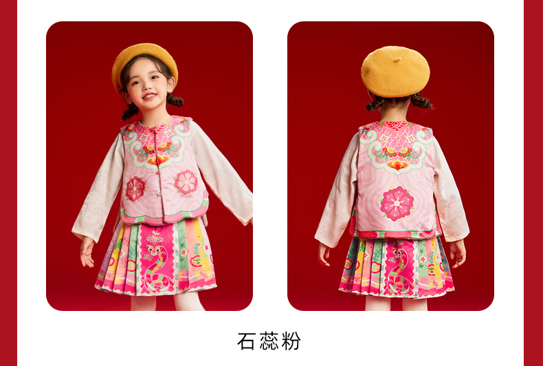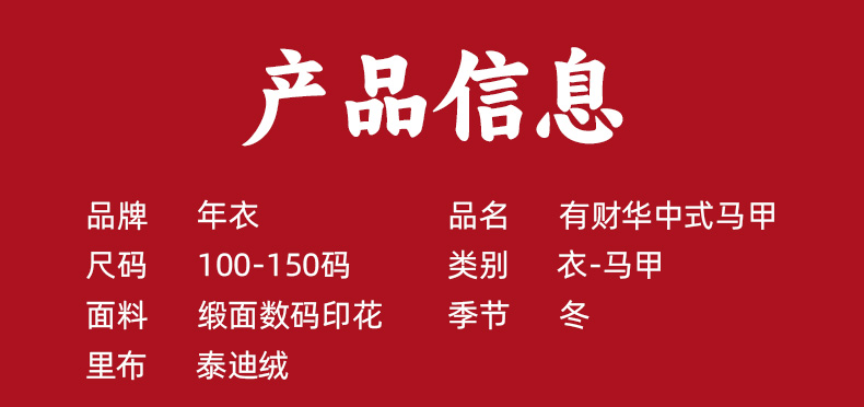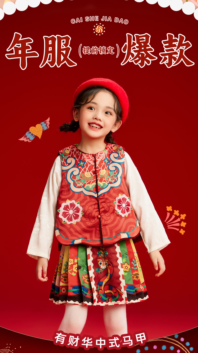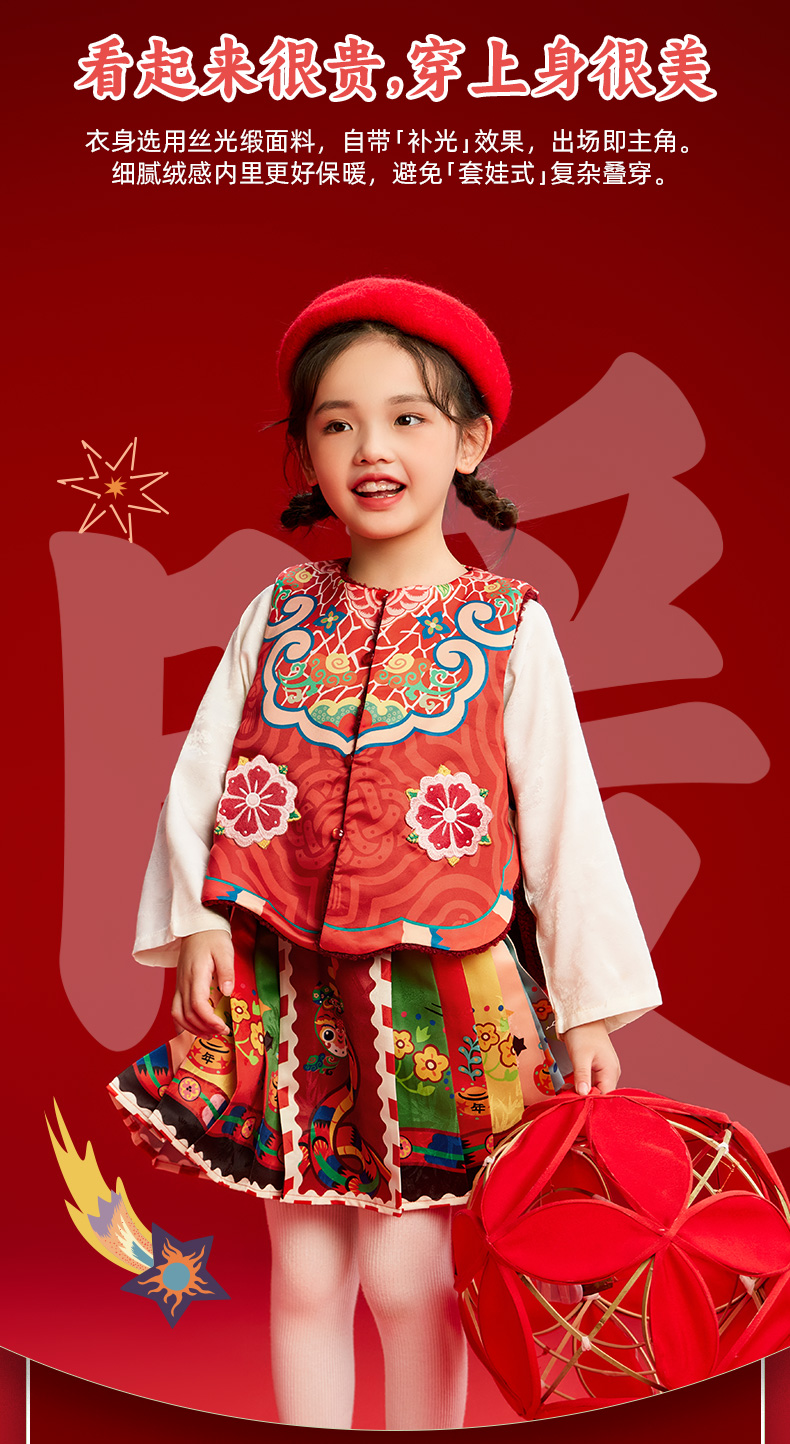 年衣童装女童马甲加绒冬装新款国风新中式儿童坎肩外出马夹拜年服有财华中式马甲