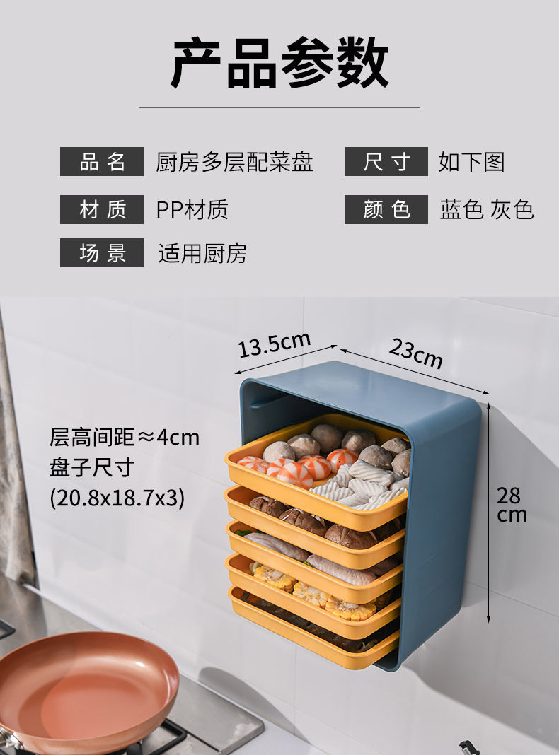【为思礼】厨房配菜盘架子置物架备菜盘多层壁挂式免打孔家用托盘多功能(gxfc10)