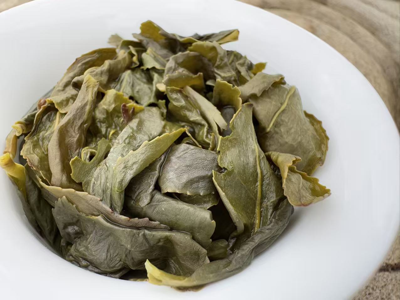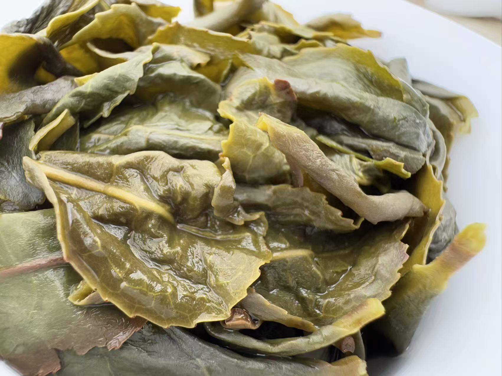 直接翻扣过来叶底,大家仔细看:超过90分的叶底?叶底闻起来有细细的花香、有纯净的观音韵。逆推工艺——没问题。