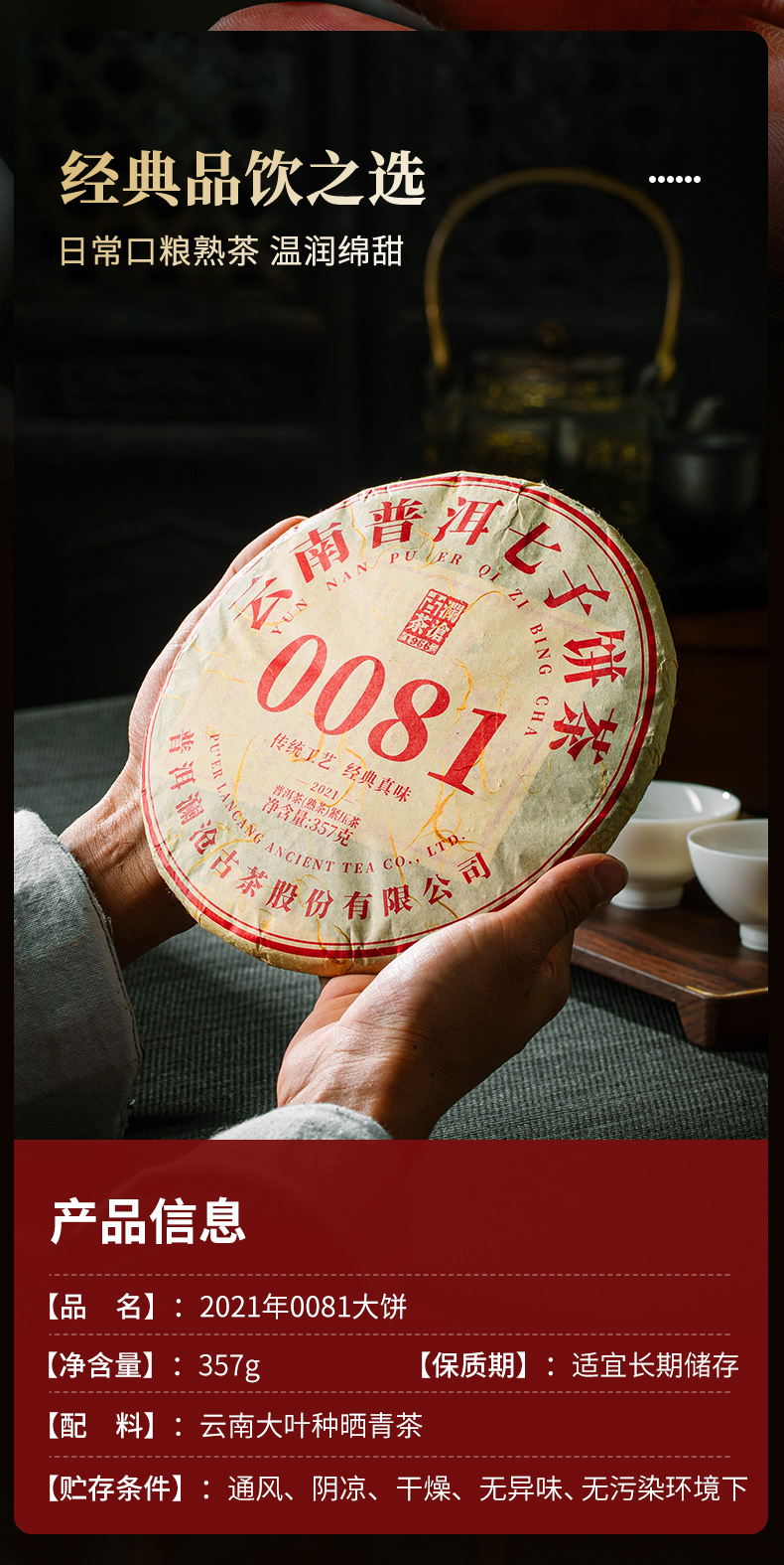 澜沧古茶2021年0081普洱茶熟茶熟普古树老树云南七子茶饼茶叶357g