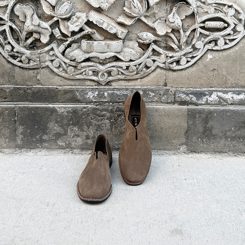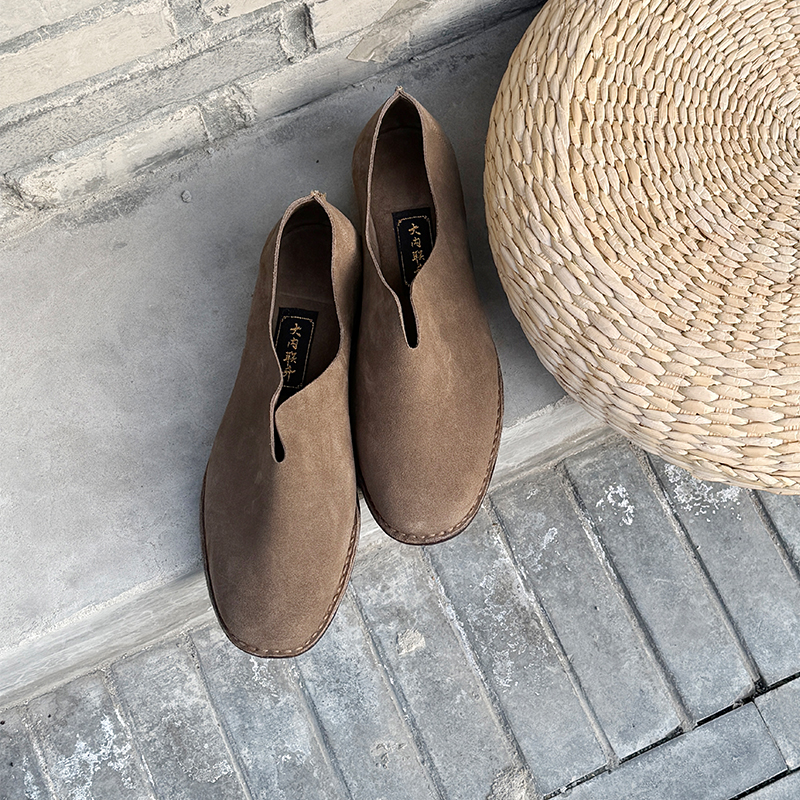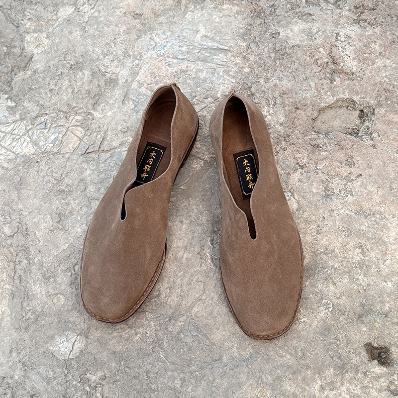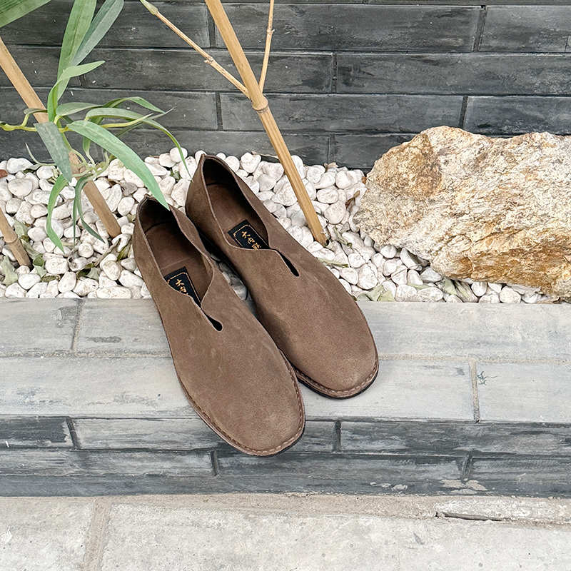 内联升男鞋手工单鞋镶芯皮底反绒牛皮便鞋DN7150