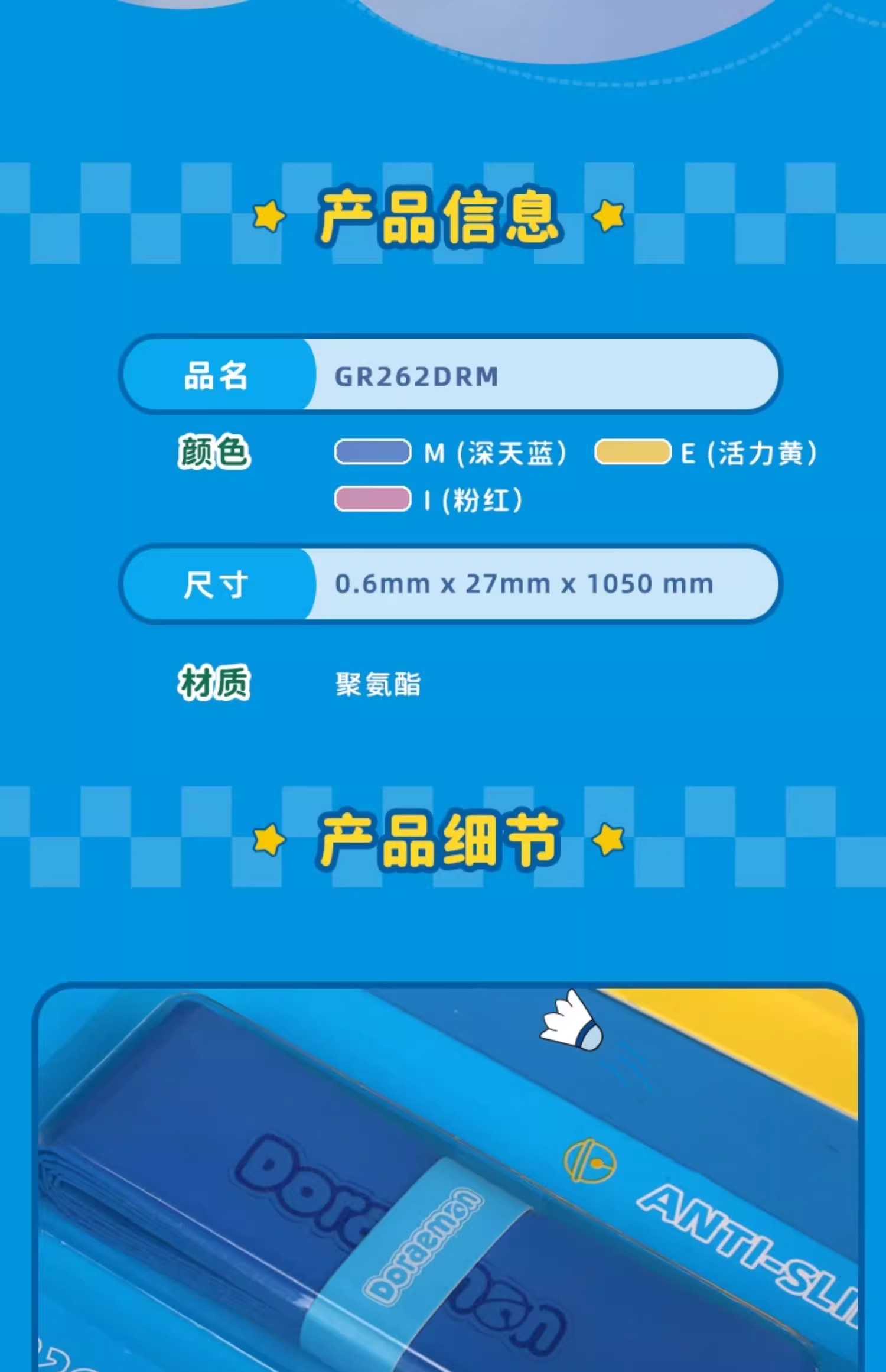 胜利威克多 哆啦A梦联名系列 羽毛球拍手胶 GR262DRM