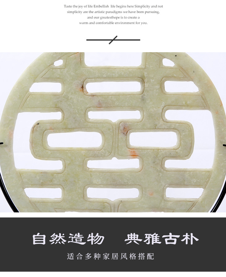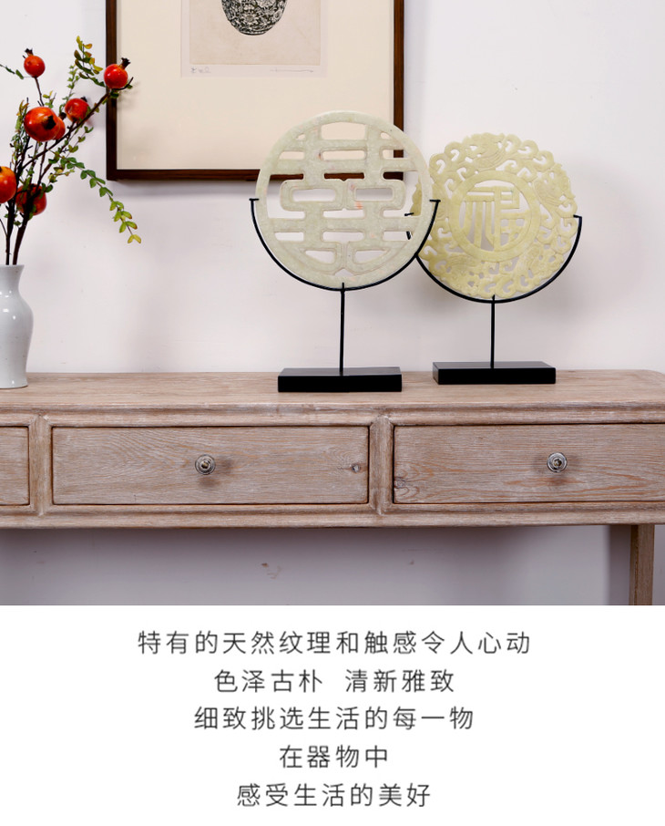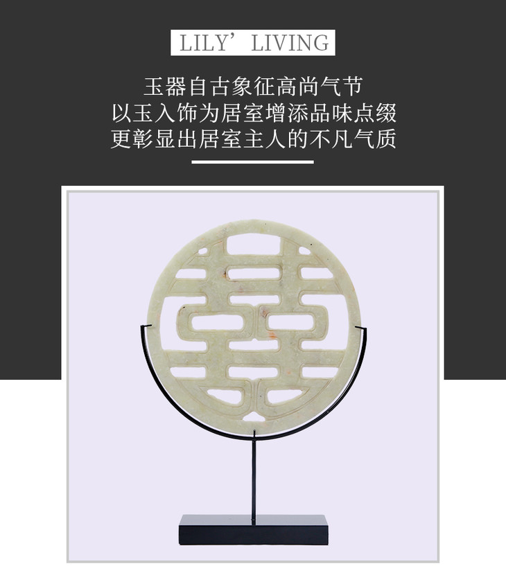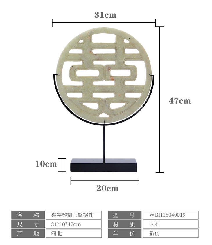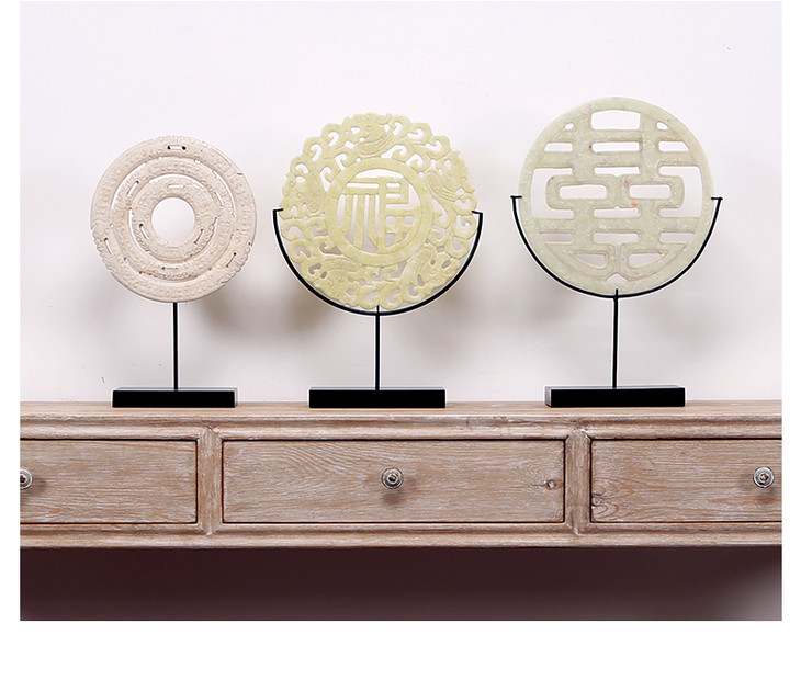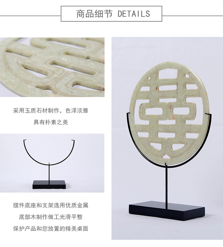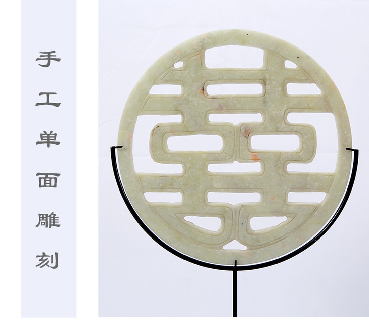 喜字镂空雕刻玉片中式玄关摆设摆件玉石玉璧软装饰品双喜