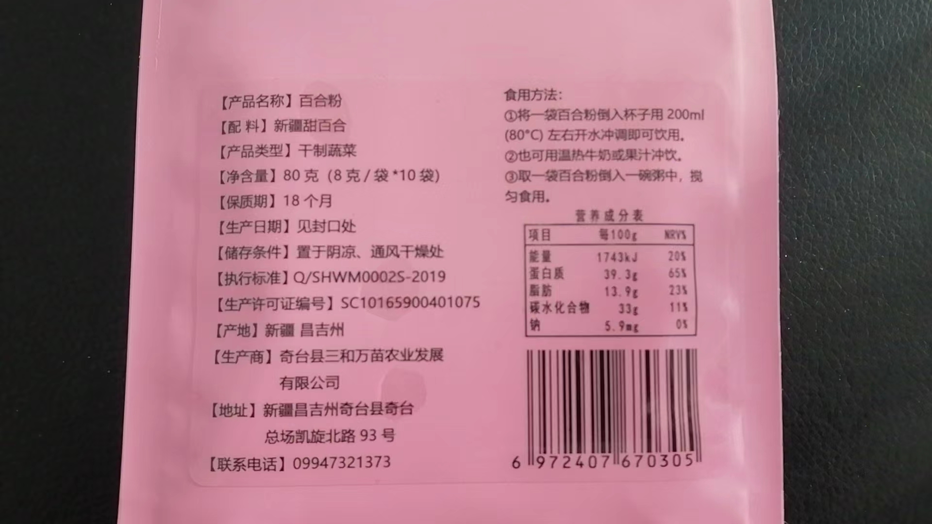 【产品名称】万苗百合粉