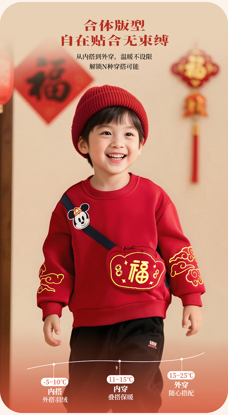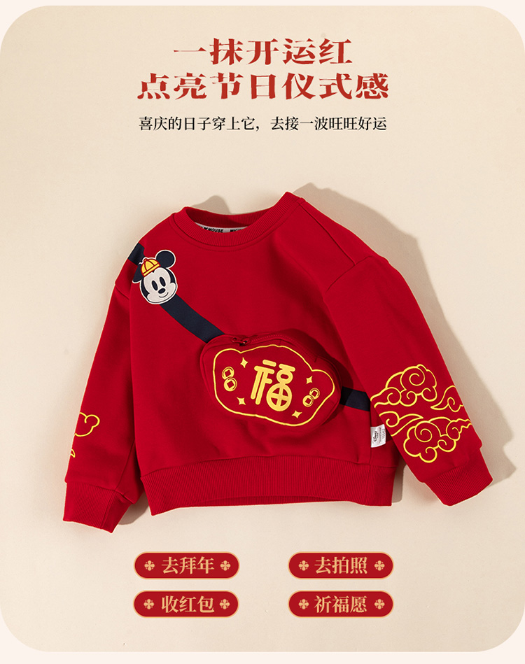 迪士尼童装圆领套头卫衣卡通洋气新款长袖上衣中大童新款卫衣ZD3ES045
