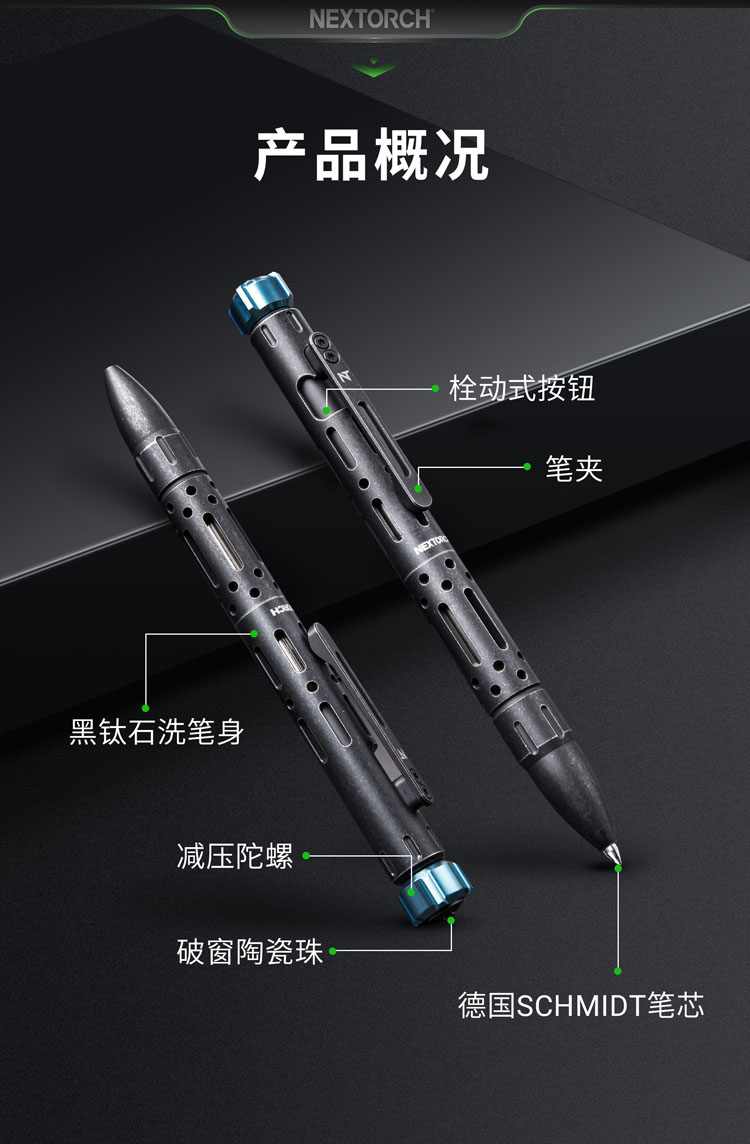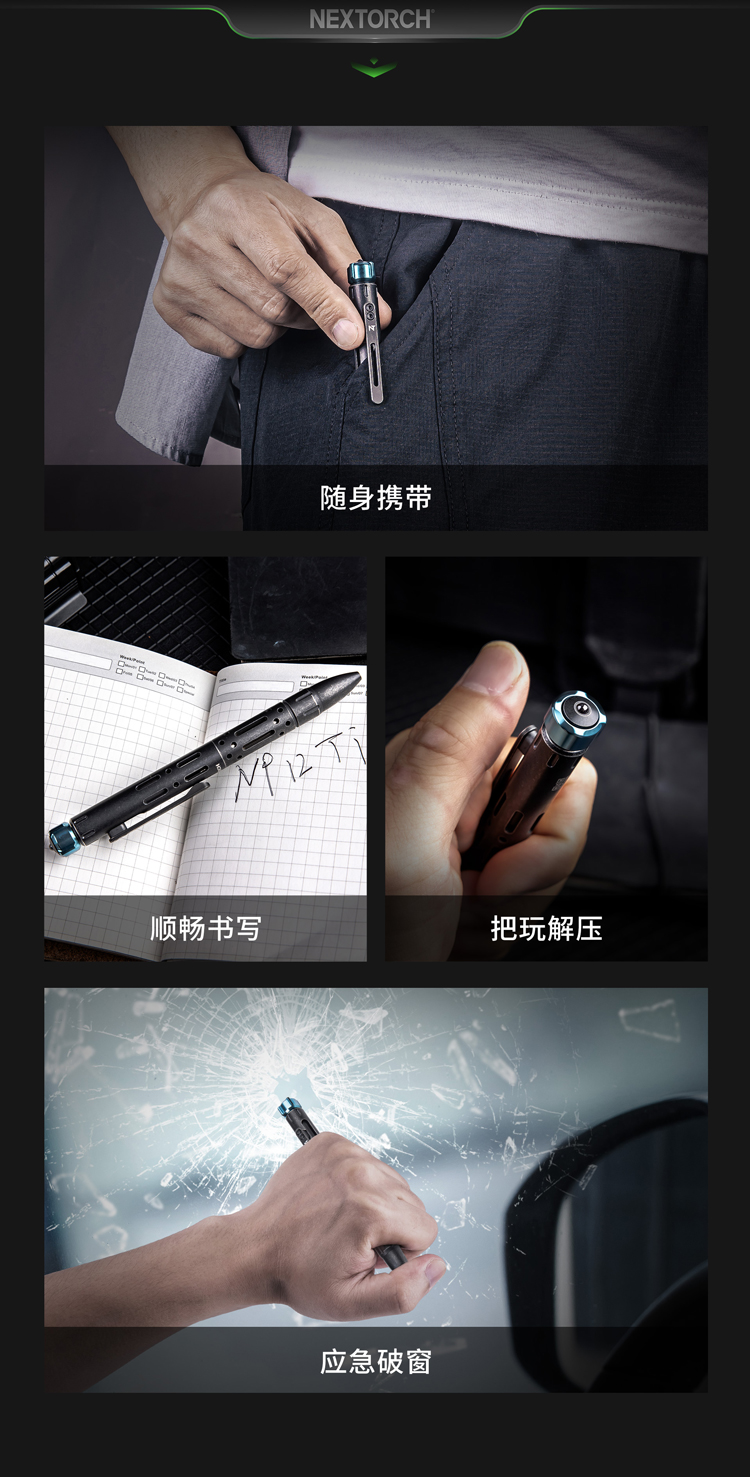 纳丽德(NEXTORCH)NP20黑色战术笔破窗防卫便携笔