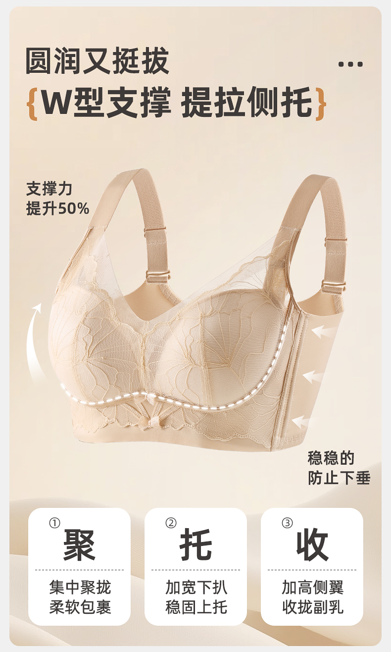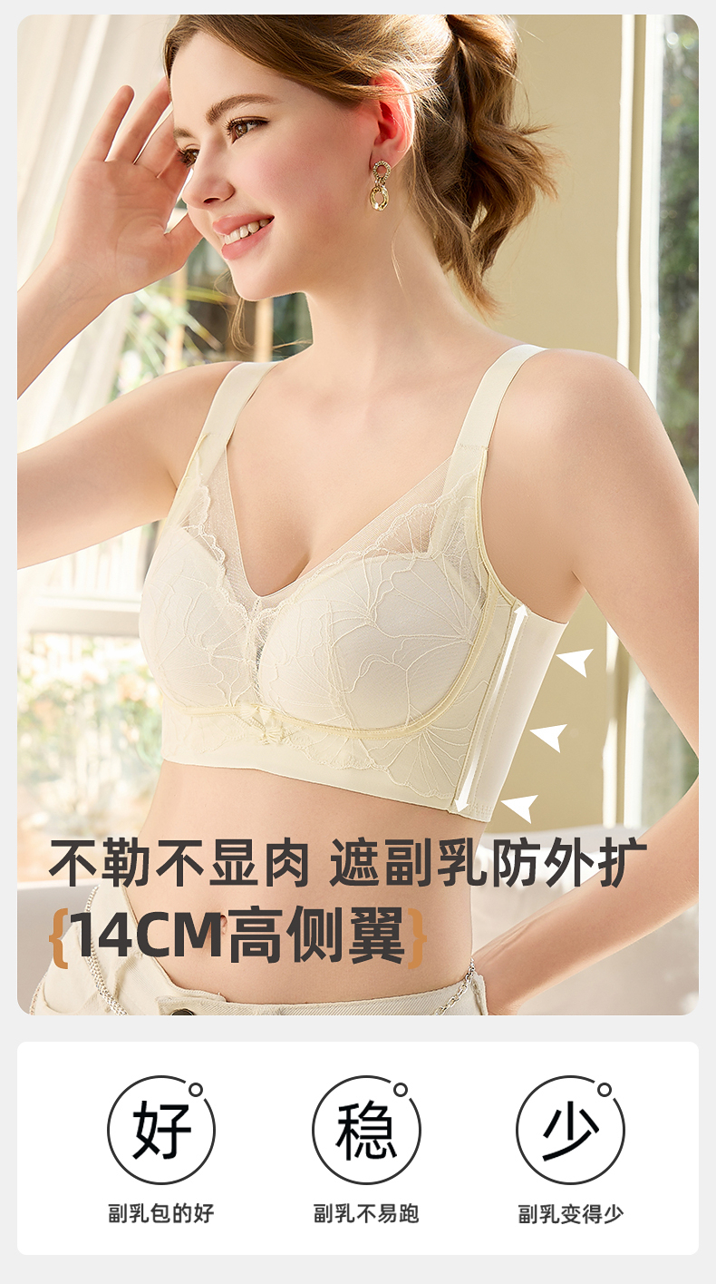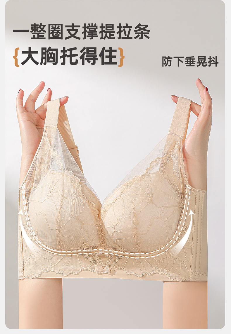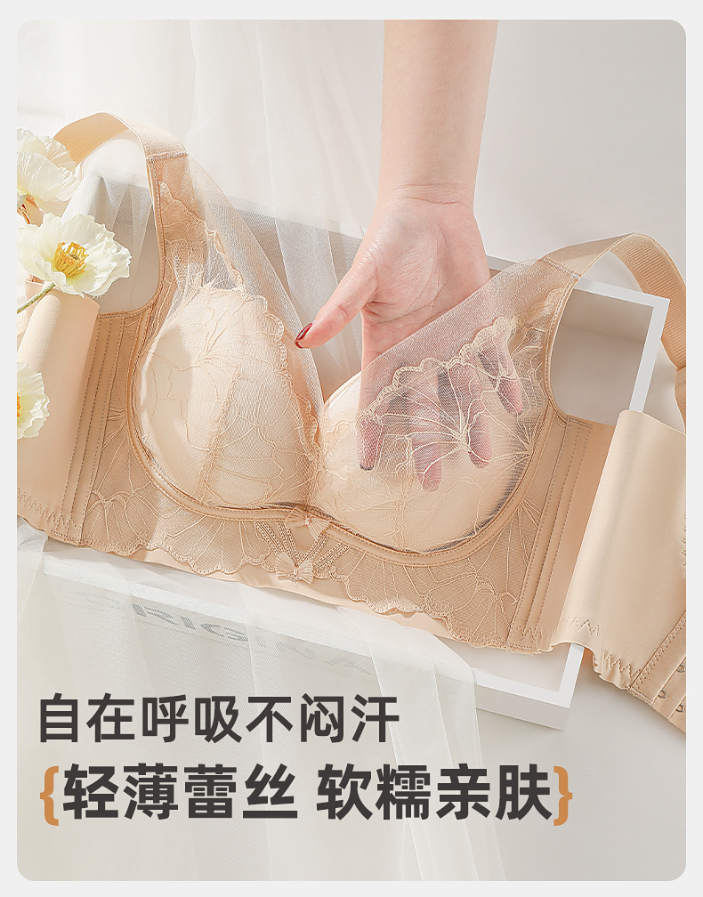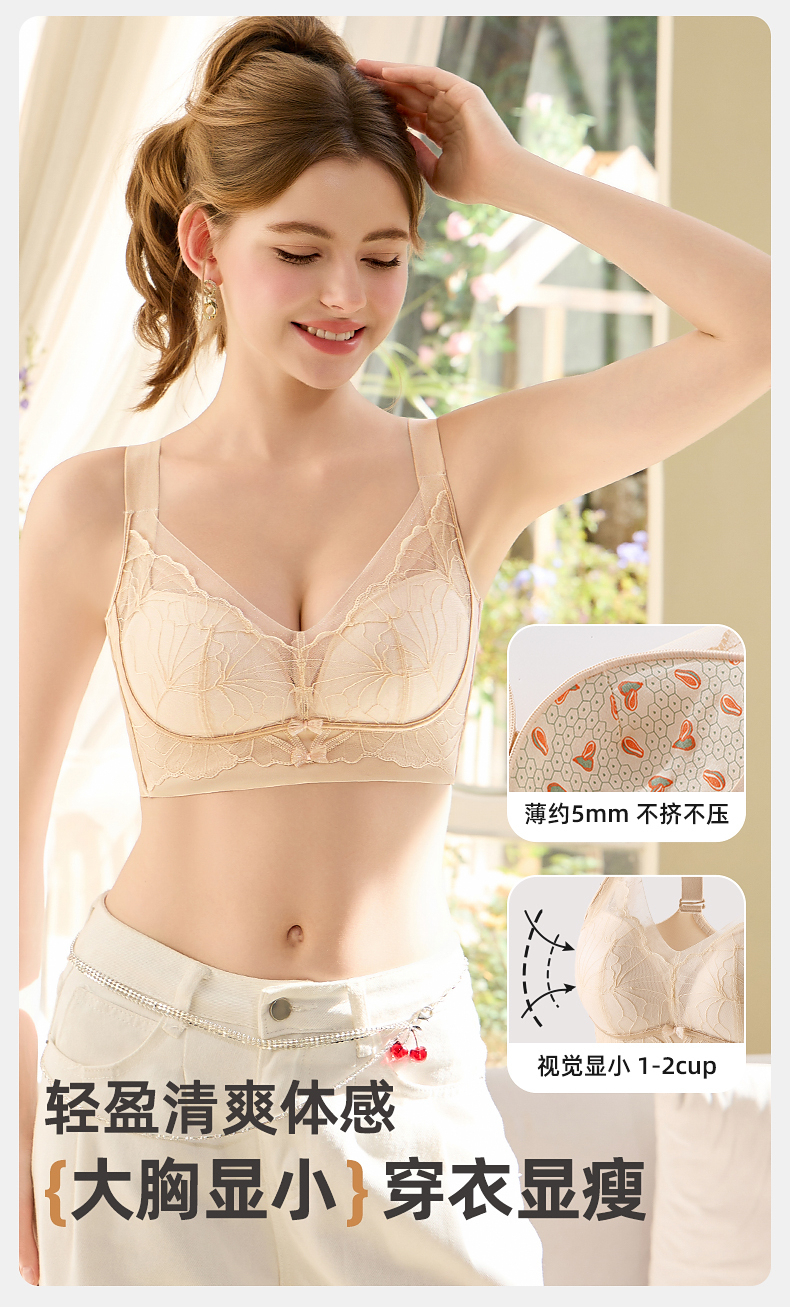 雅黛俪大胸显小显瘦女士文胸轻薄性感蕾丝收副乳提拉内衣胸罩