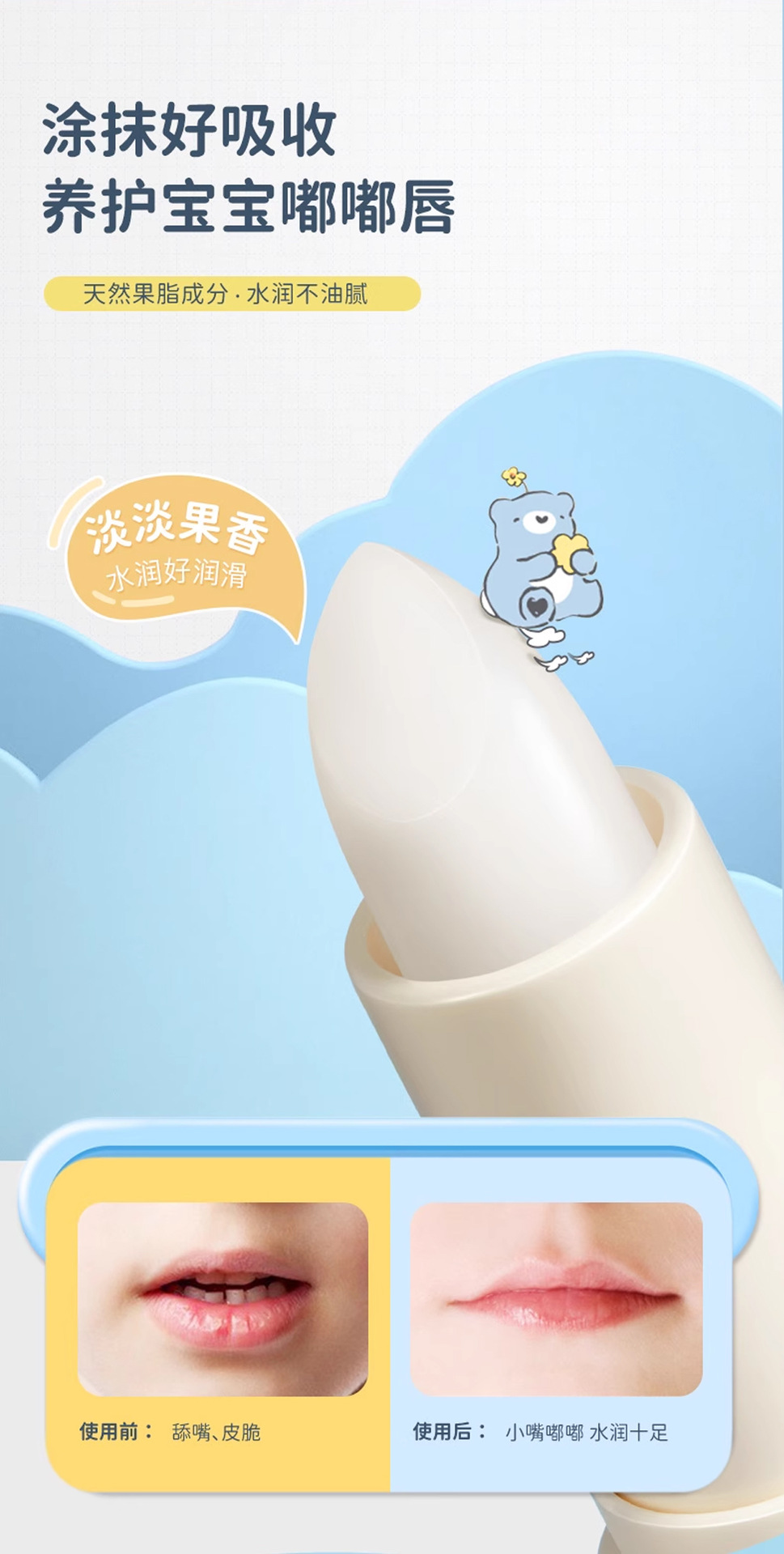 【19.9抢2支!儿童倍护润唇膏】很亲肤!好吸收!不怕舔!正品添加“凡士林”成分儿童倍护润唇膏,自然植萃配方秋冬滋润保湿防干裂儿童专用唇膏QQ