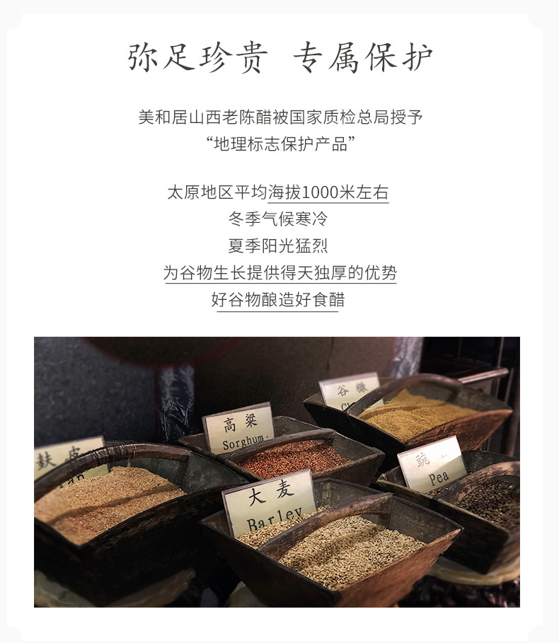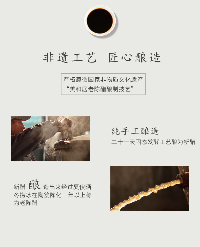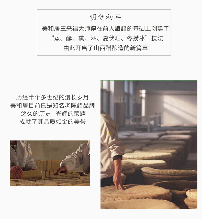 - 美和居始创于1368年,为山西老陈醋开创者,国家级非物质文化遗产酿制技艺,国家地理标志保护产品!