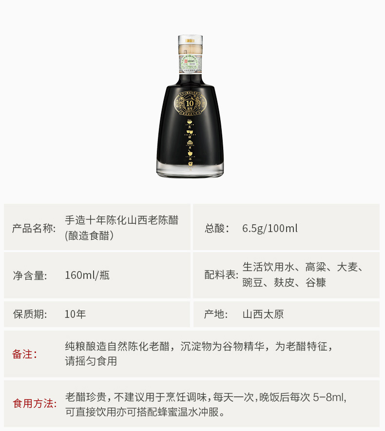 【美和居-直接喝的醋】十年陈酿山西特产老陈醋手工五谷酿造160ml
