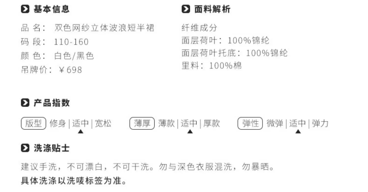 【春上新】【3折】8楼琳麦罗 LYNNMILO 黑色白色网纱立体波浪短半裙 吊牌价:698元 活动价:209元