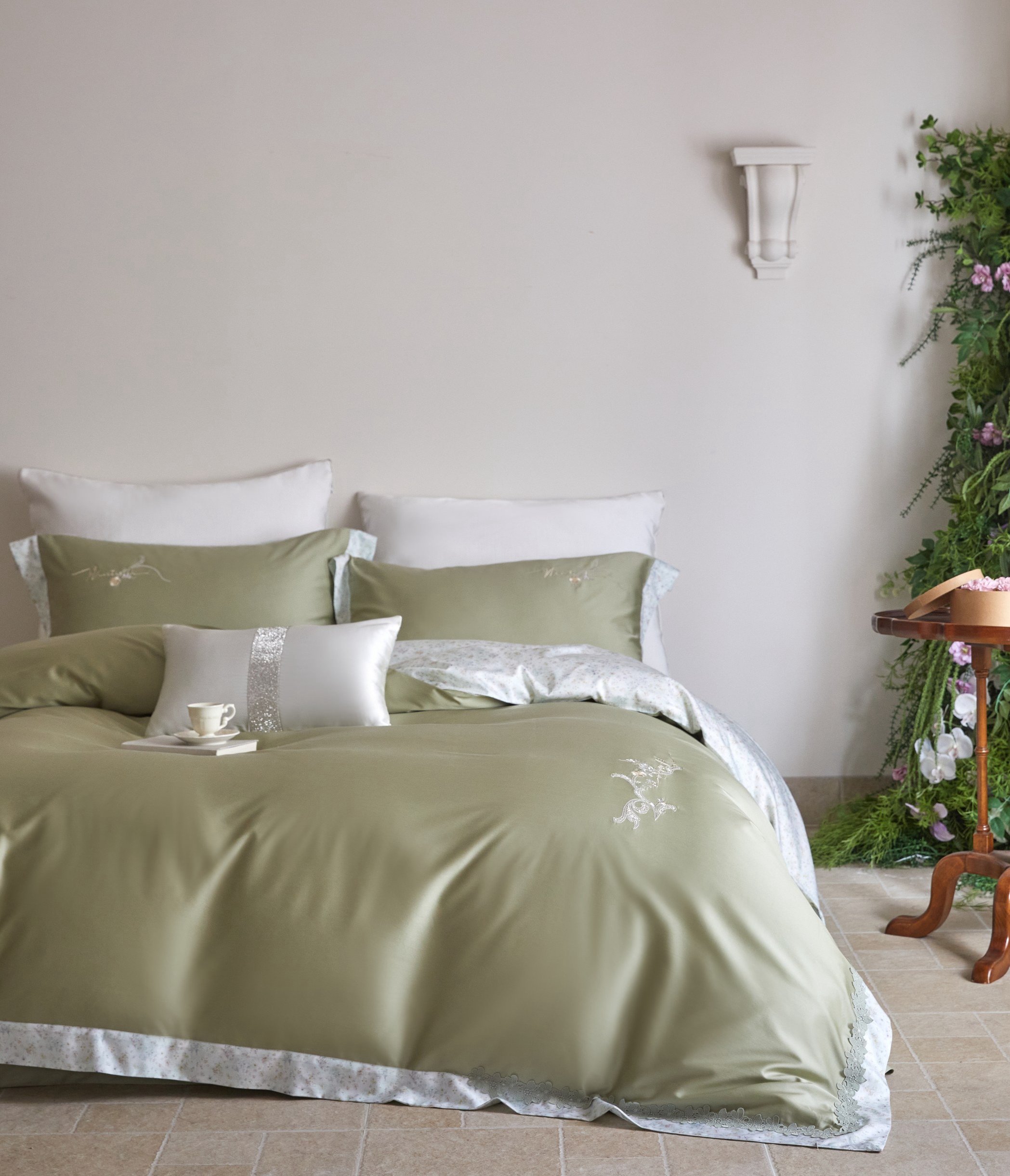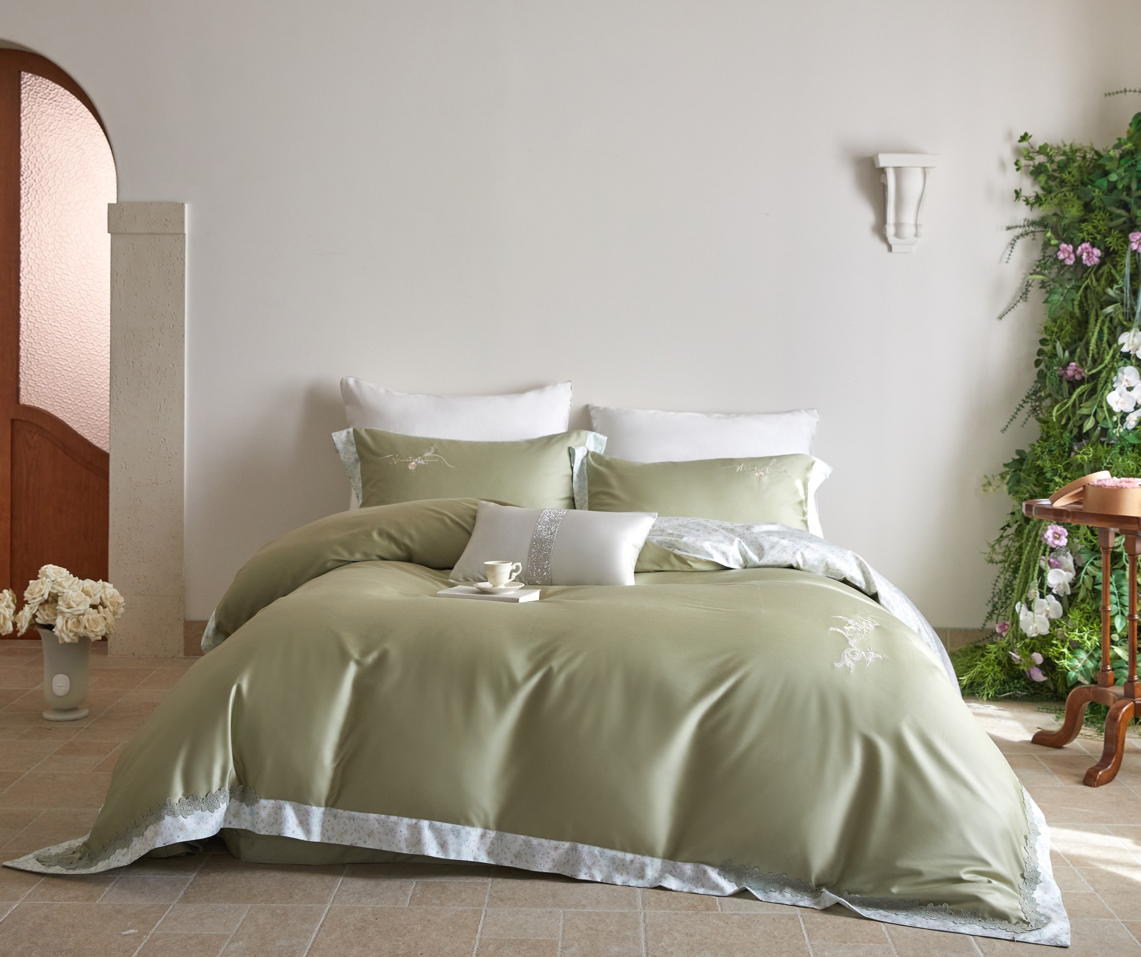 YESNOW 新出的「花畔」天丝棉四件套,直接把温柔和高级焊在床上了!
