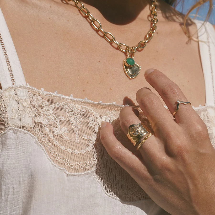 这款曲线风格的戒指带有几何元素,散发出永恒的优雅气质