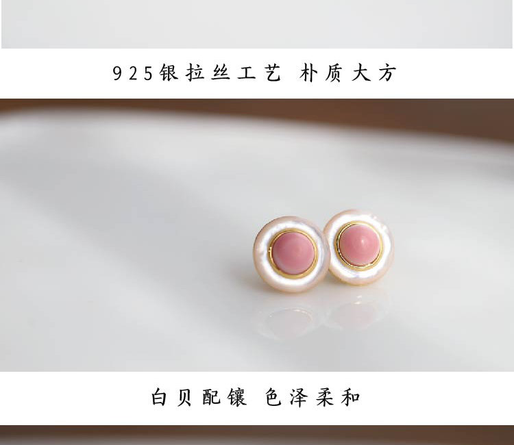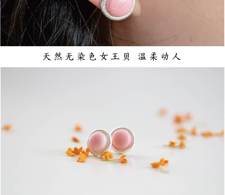 米马饰物 925银 天然女王贝复古耳钉 大女主气质