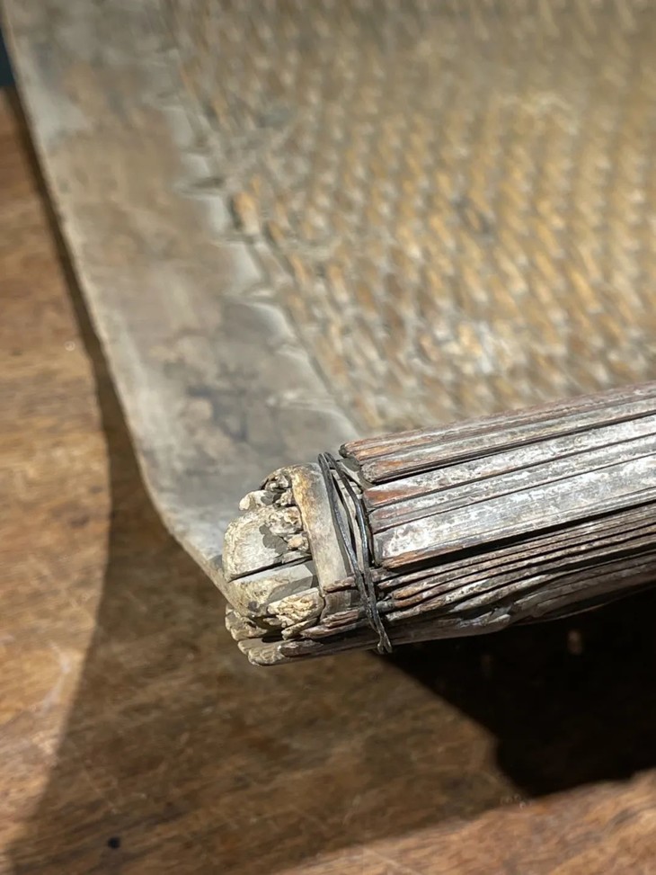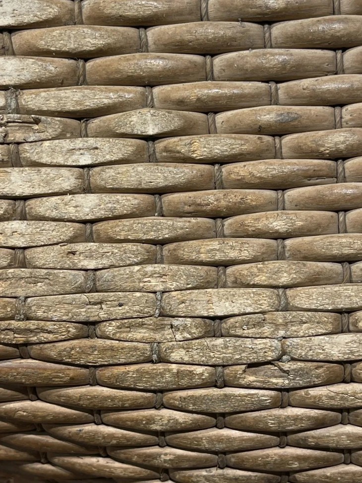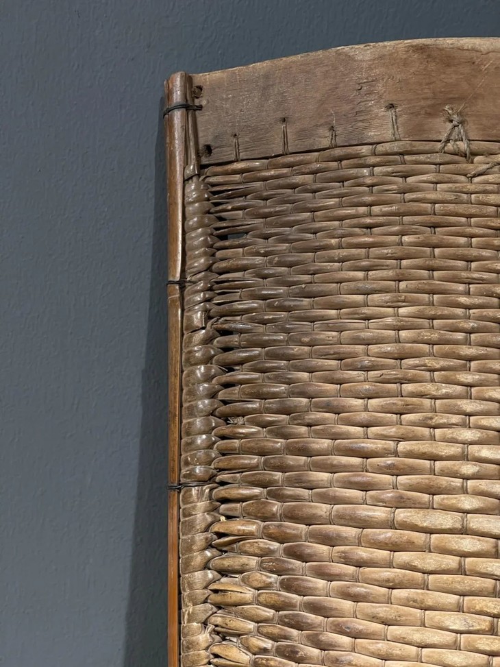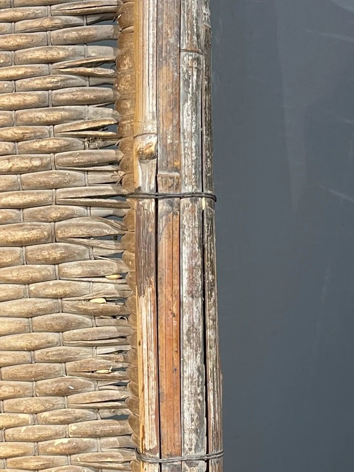 此竹架蒲草编老簸箕,整体设计经典坚固,材质特殊、制作严谨、编织细节精致令人赞叹,是当代空间增色添彩的典雅旧物,尽显主人之高雅品味。
