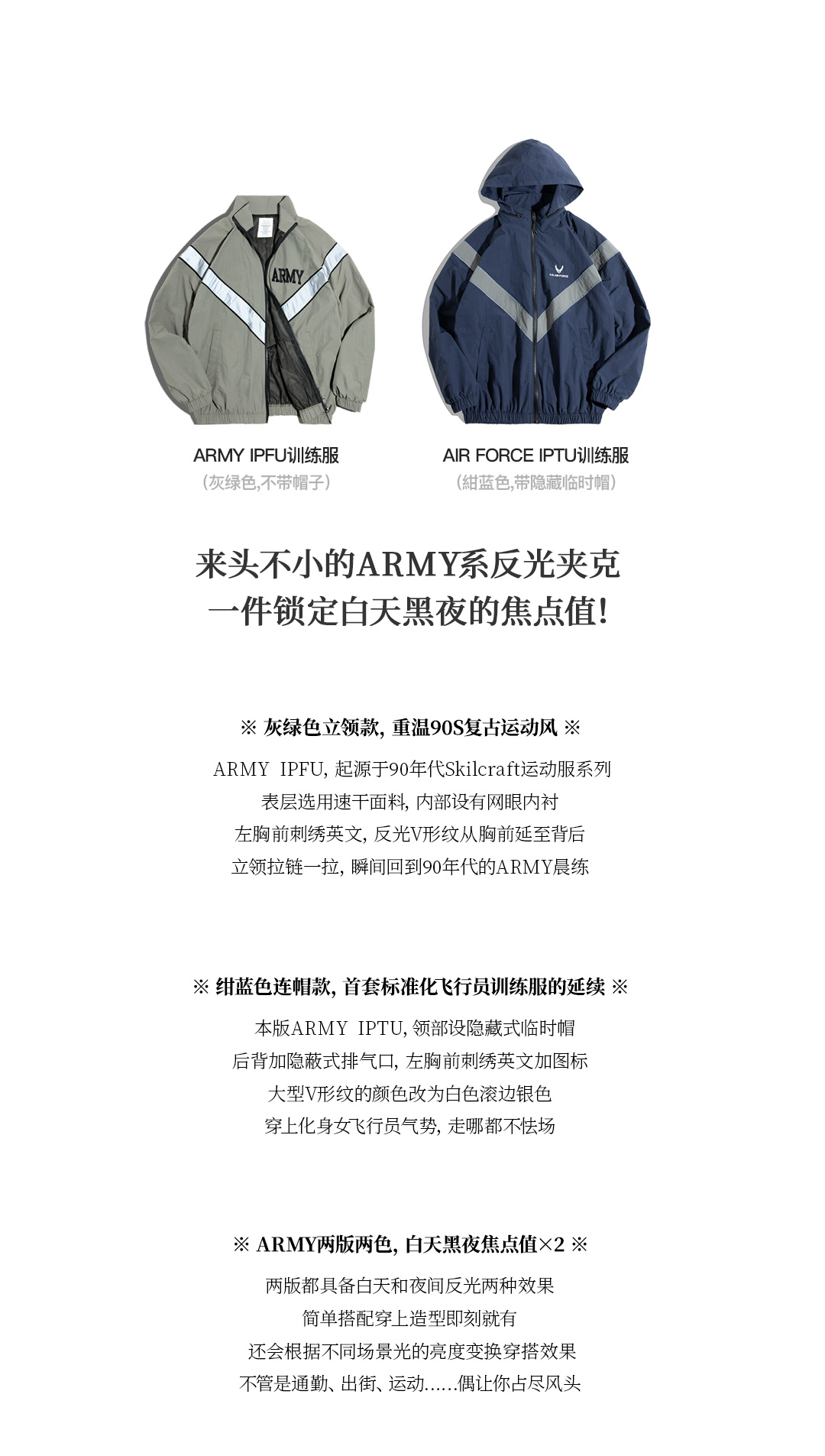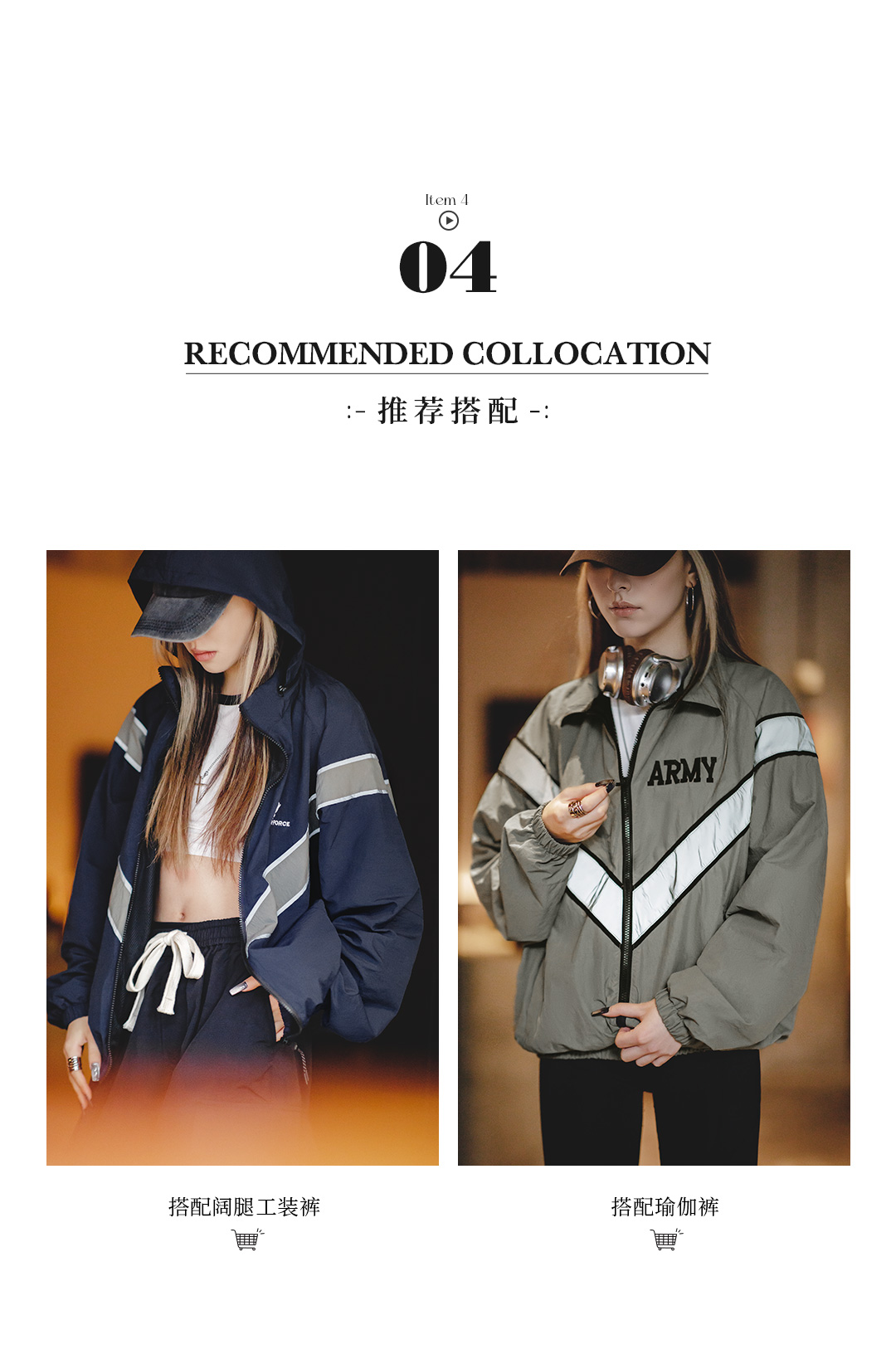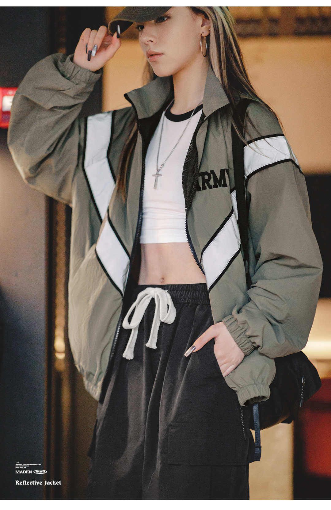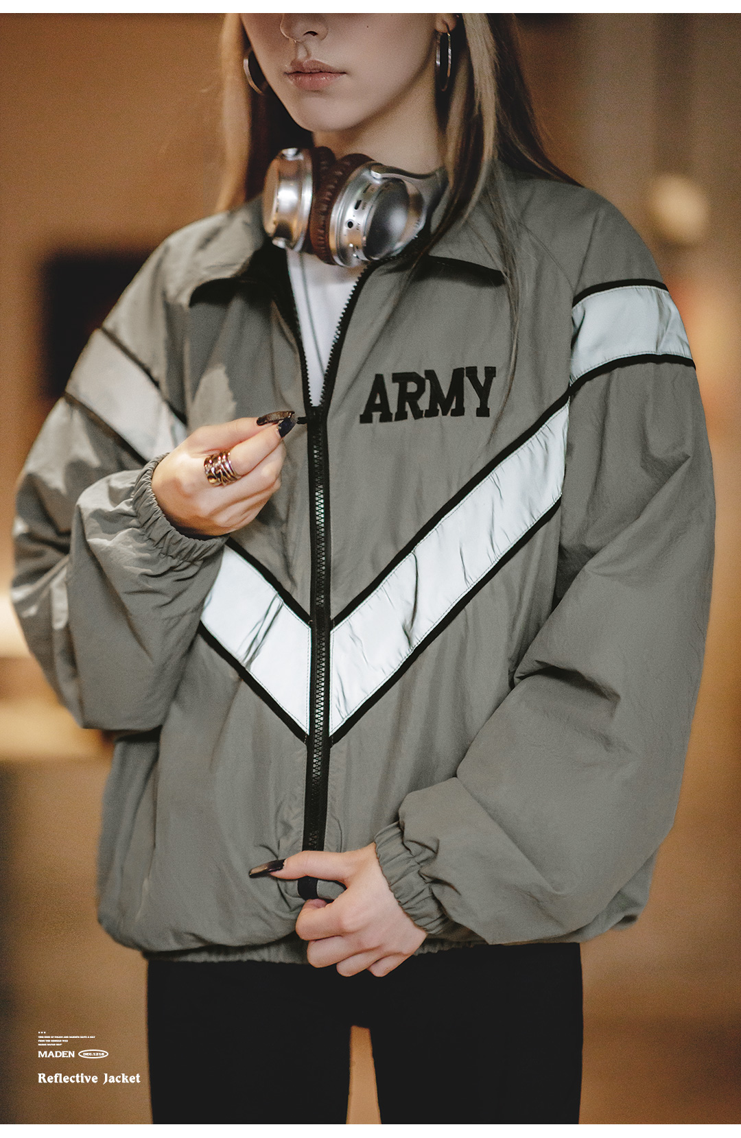 马登 复古ARMY反光飞行员夹克速干运动训练服上衣外套秋冬女