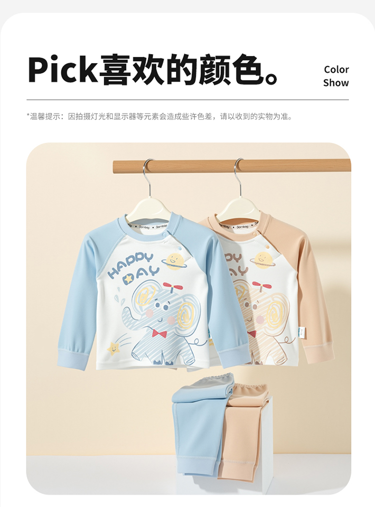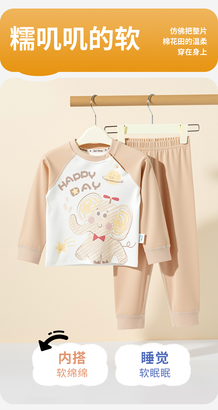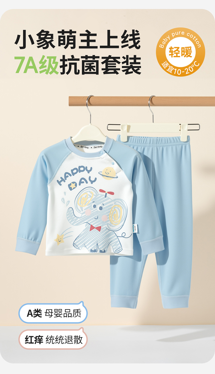 贝贝怡男女宝宝内衣套装春秋婴儿套头上衣秋衣秋裤家居服ZB3ET012