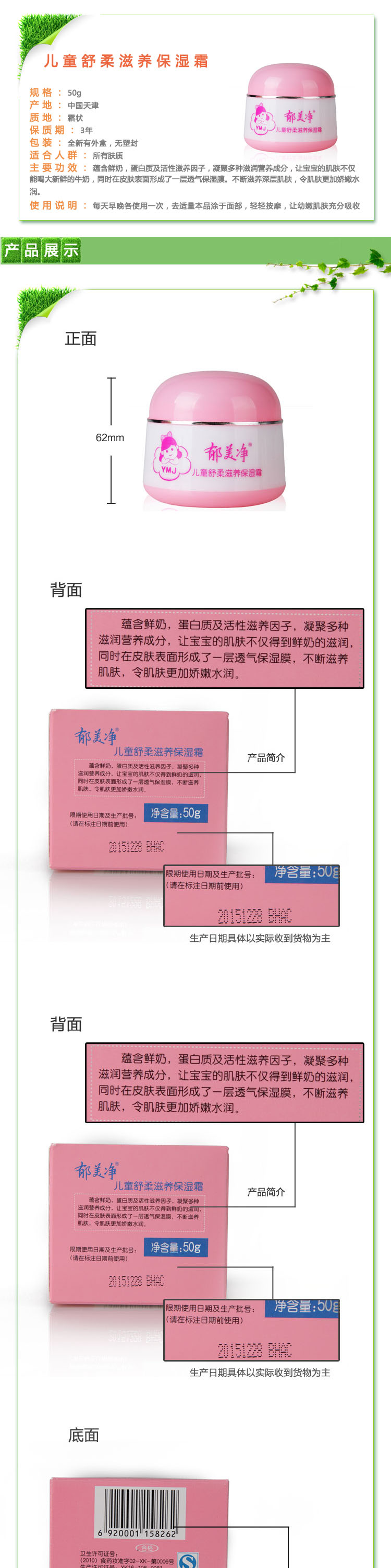 郁美净儿童舒柔滋养保湿霜50g【30173795】