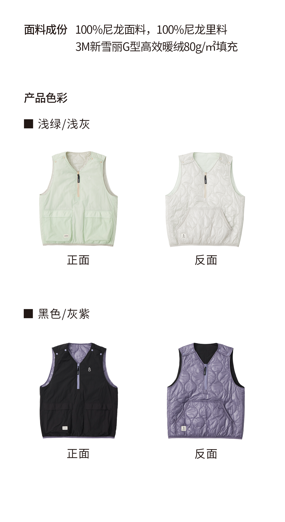 吃茶去chichaqu25秋冬新雪丽3M轻型保暖无领内胆棉服双面穿绗缝
