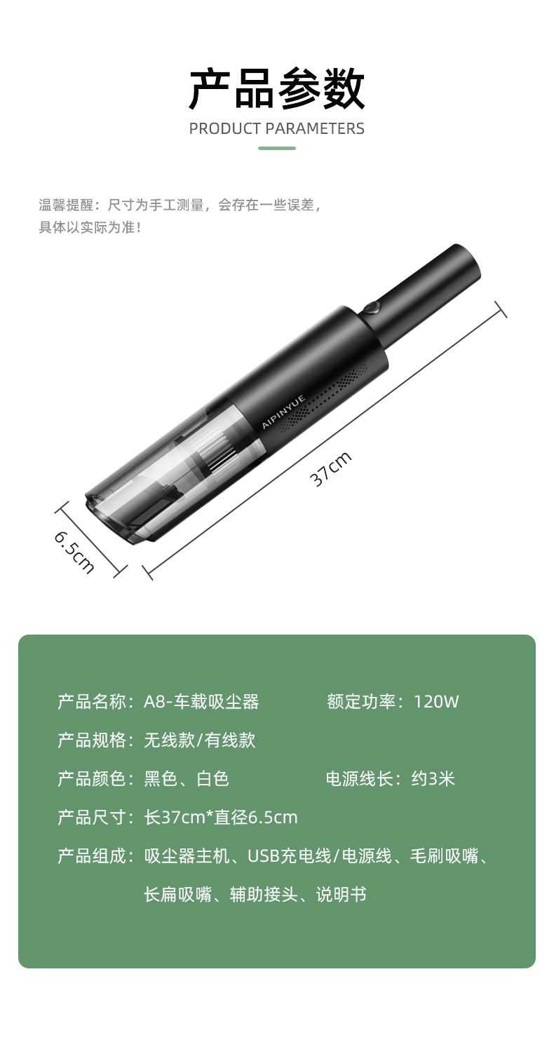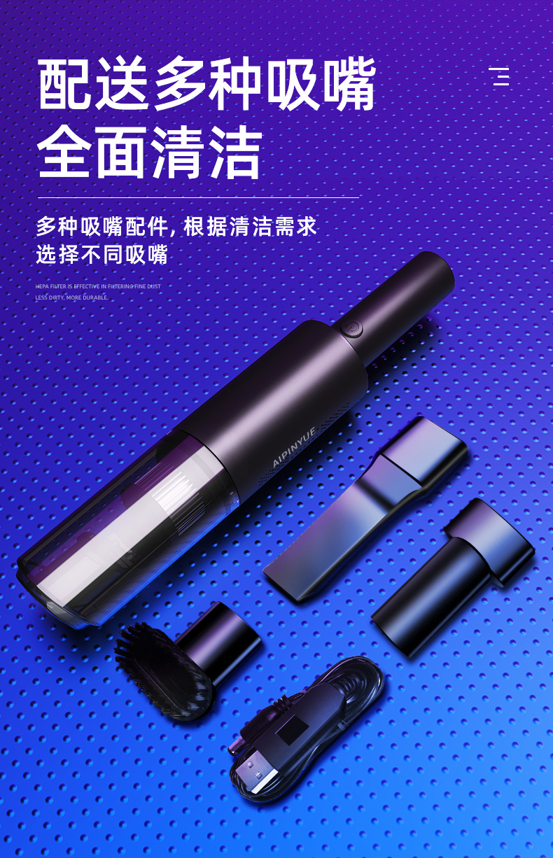 AIPINYUE爱品悦 手持式车载吸尘器 无线充电大功率便携式 干湿两用 打理清洁小能手 A8