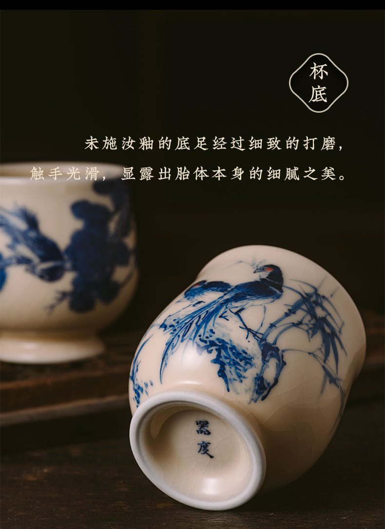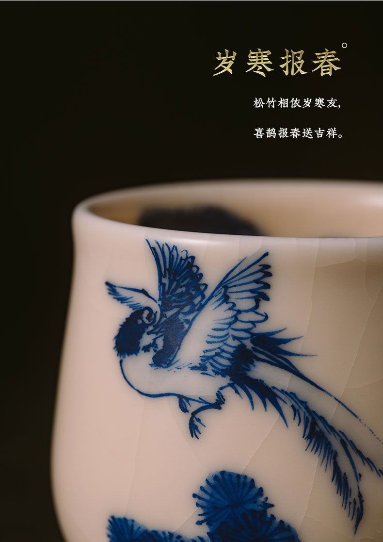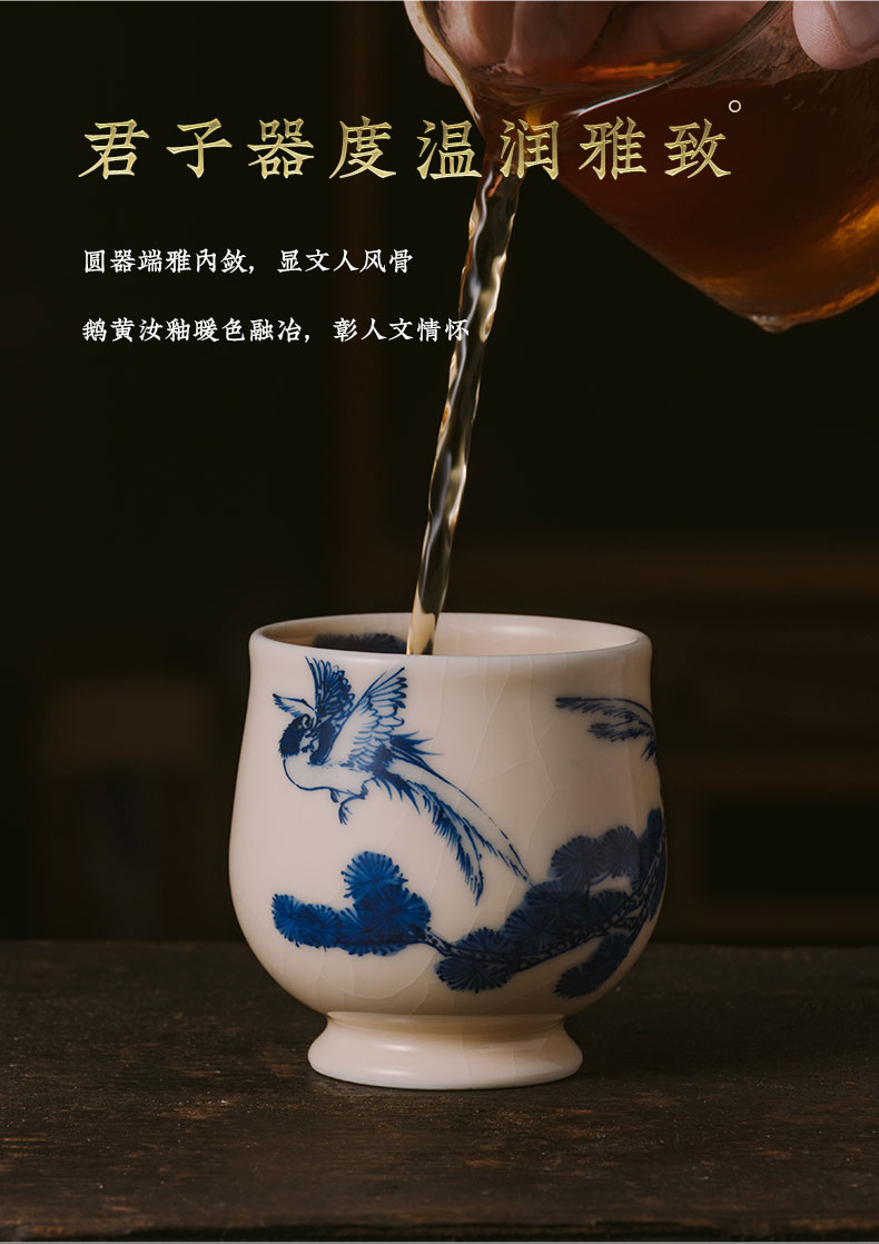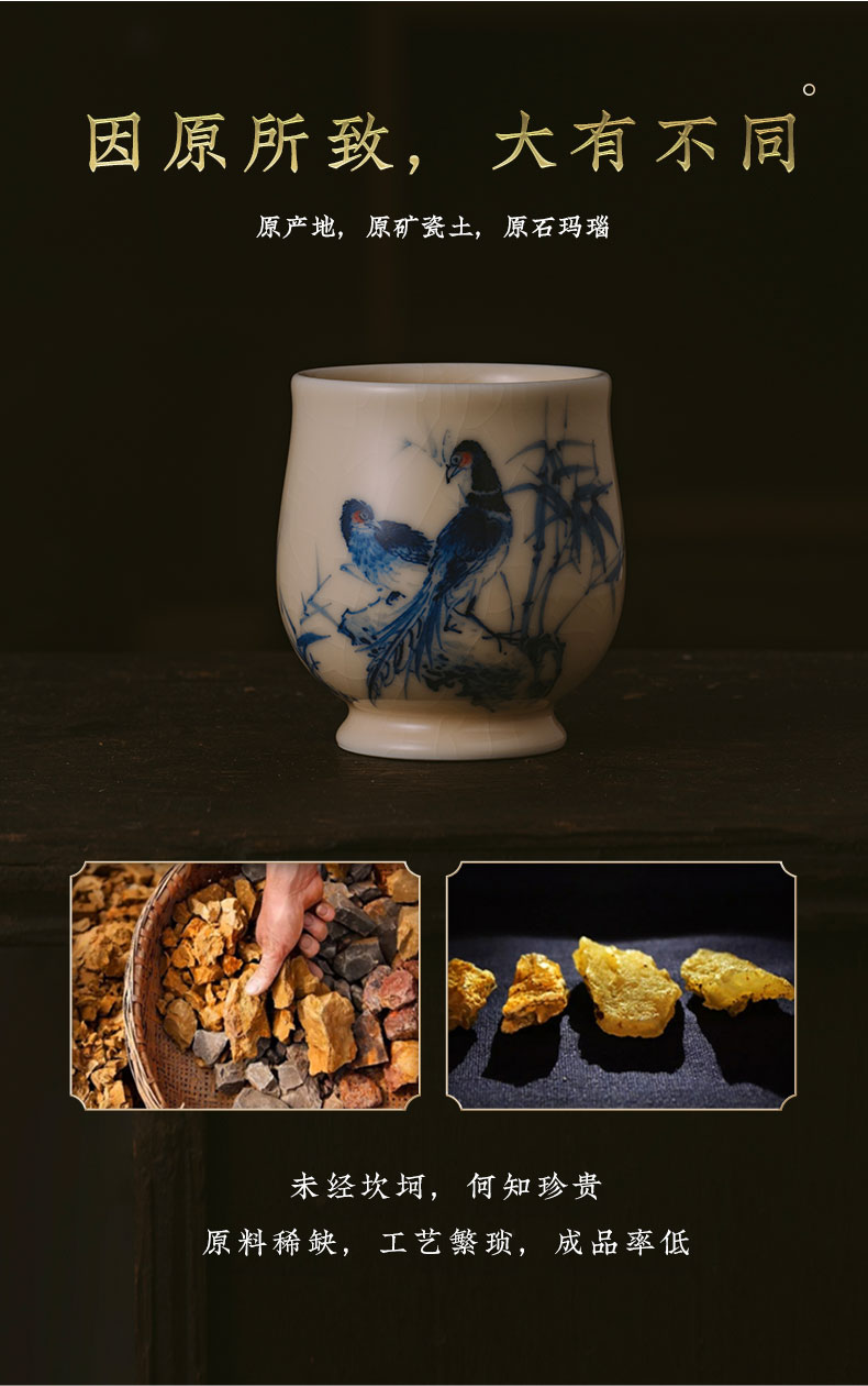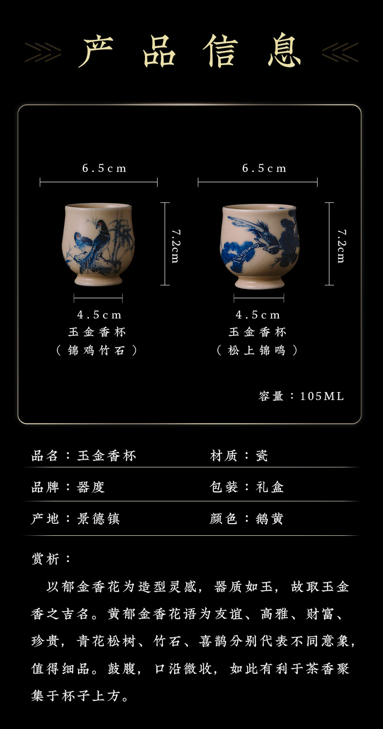 问鼎器度汝窑鹅黄青花玉金香杯(前程似锦)(松上锦鸣)(锦鸡竹石)(缺货)