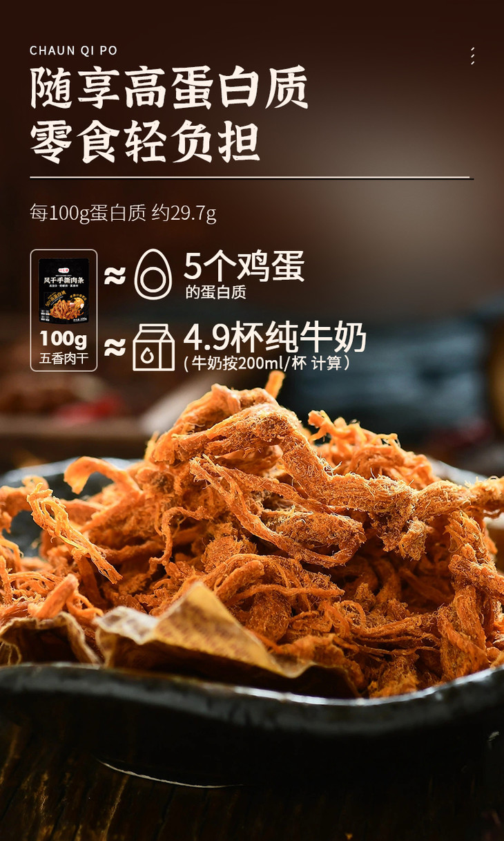 川七婆风干手撕鸡肉条 拍1发5 100g/袋 麻辣鲜香 低脂低卡 高蛋白解馋零食