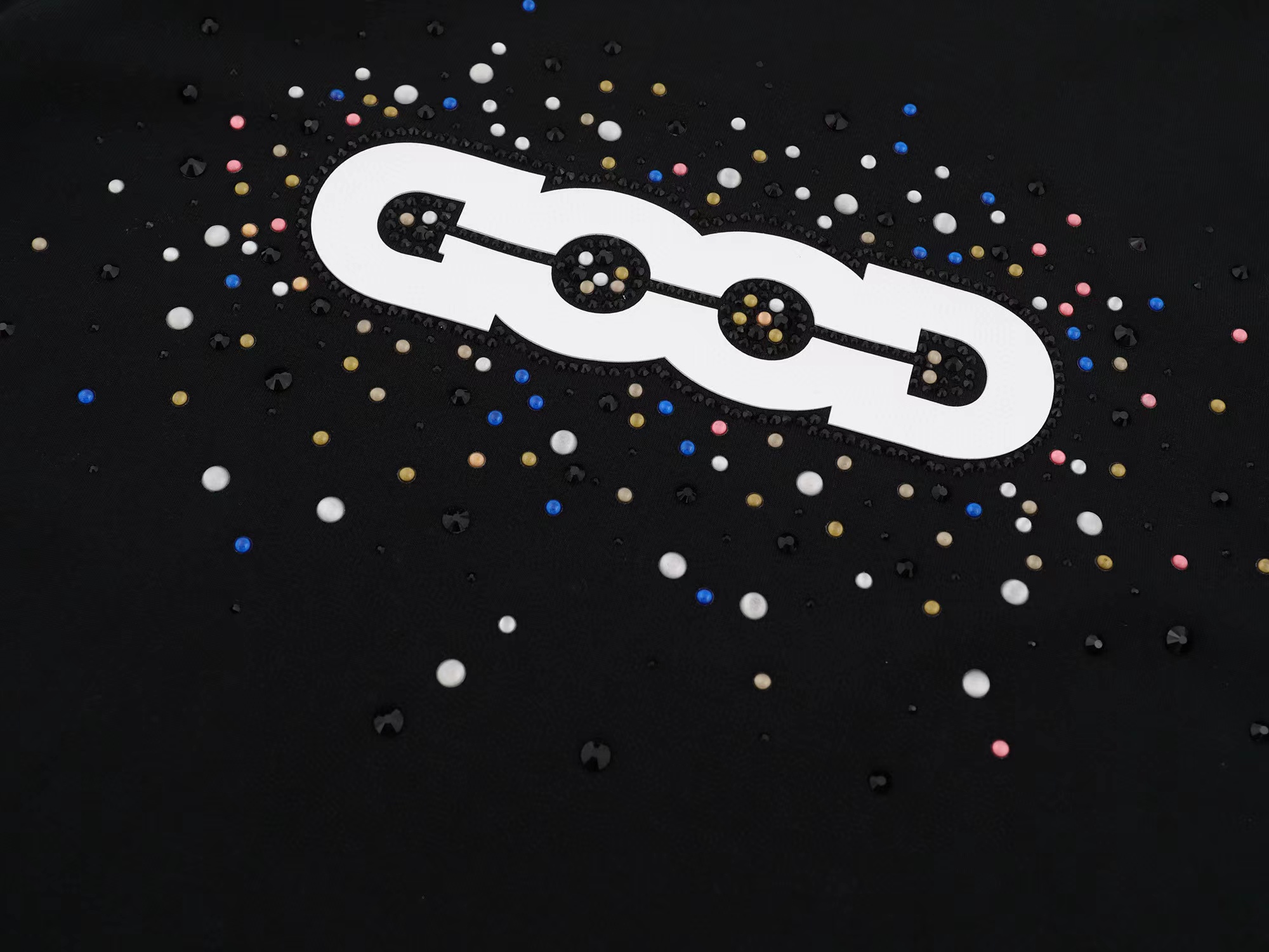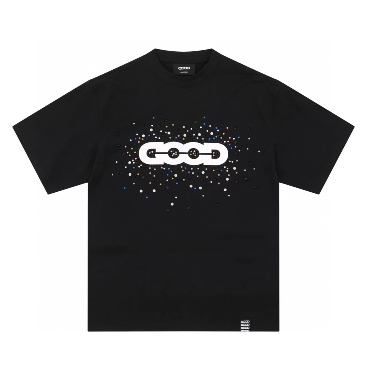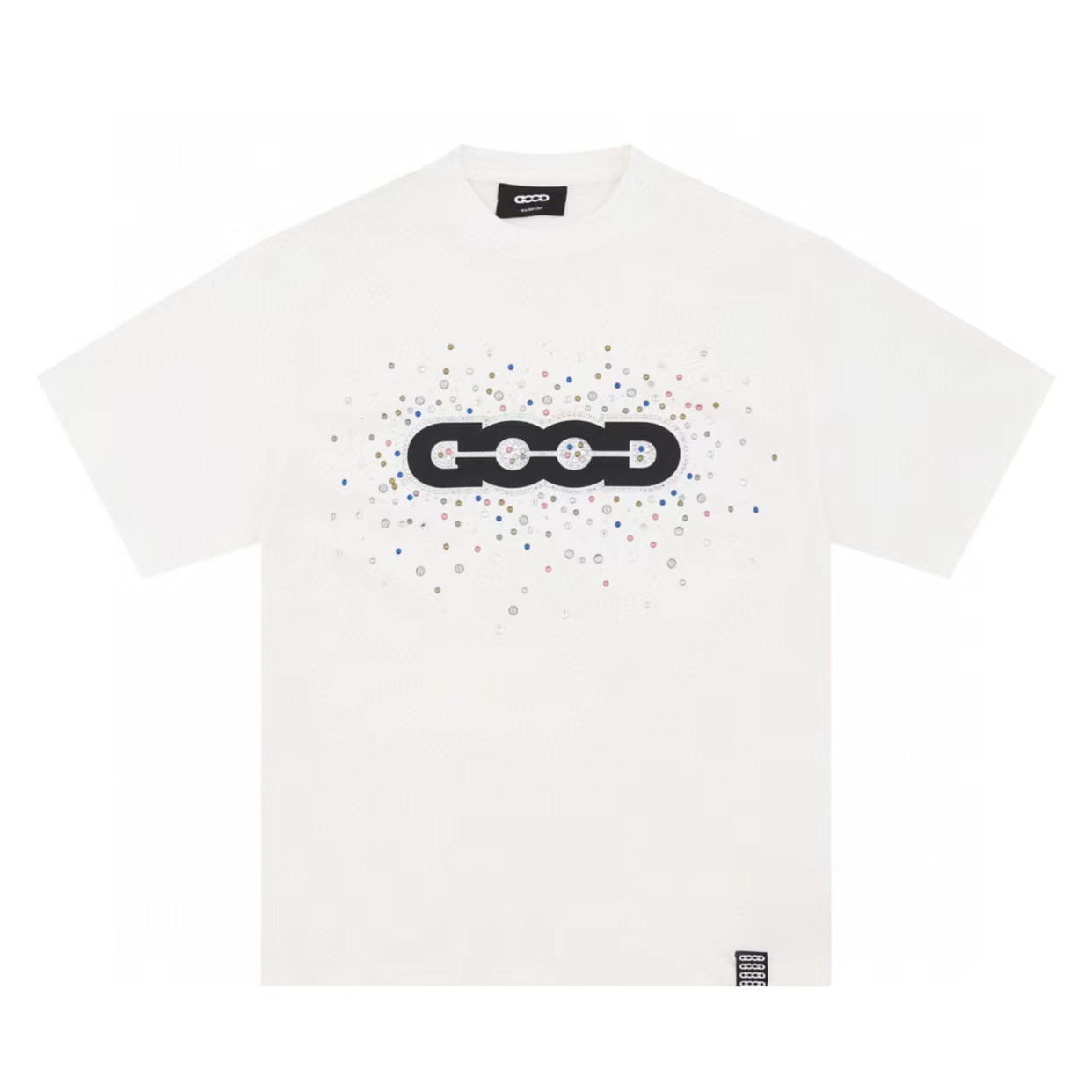 老白同款假日缤纷糖果宝石猫眼石情侣圆领短袖T恤 采用32支紧密双纱280g面料 独特剪裁宽松显瘦 定织定染同版紧密螺纹~胸前字母采用立体胶印 周围镶嵌各种克拉小彩钻 工艺复杂 耗时耗力 后领口定制原版五金字母纽扣 下摆缝制并排字母大标 凸显整衣特点 大厂做工