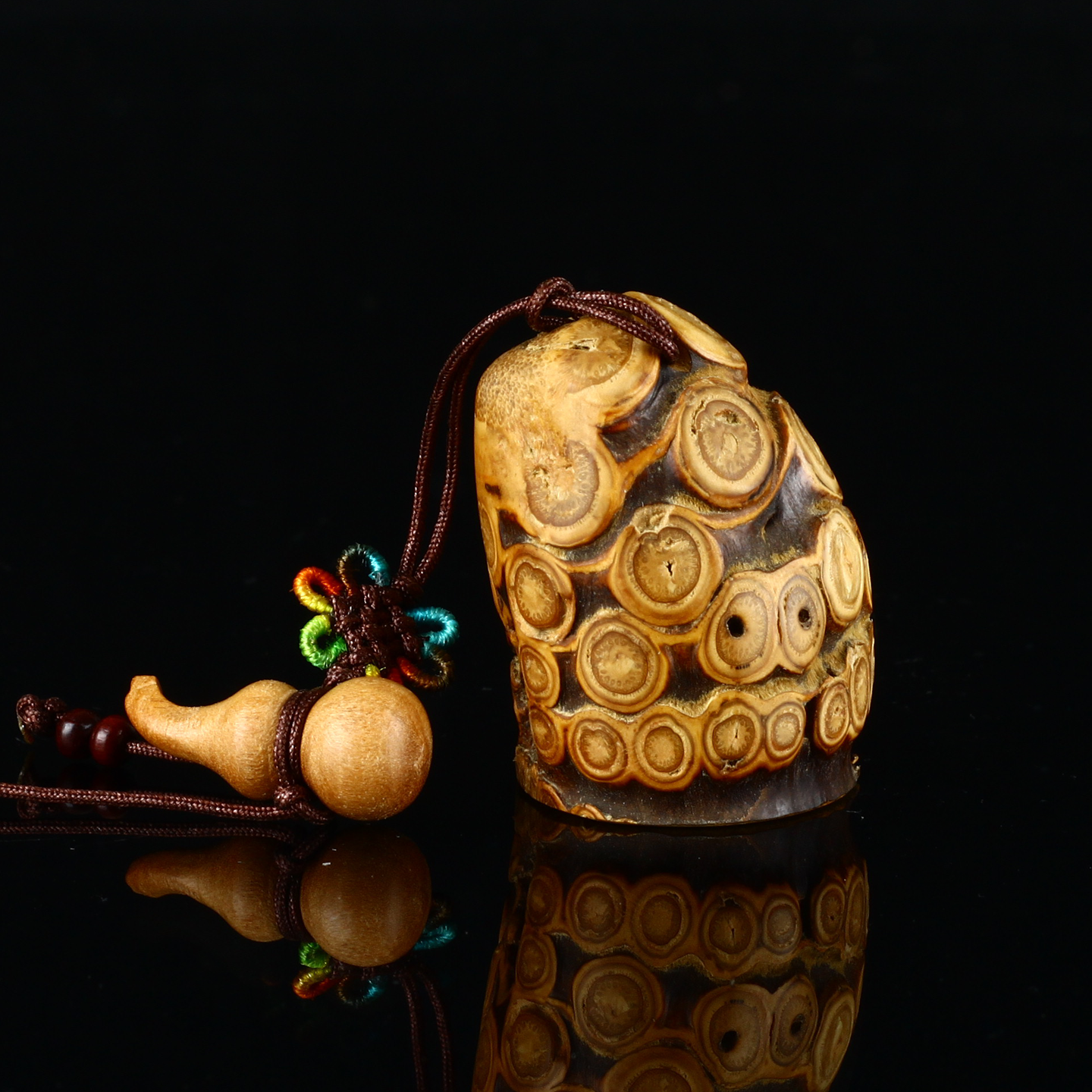 孤品18021天然紫竹竹根印章圆形别致2.8*2.5*3.8cm