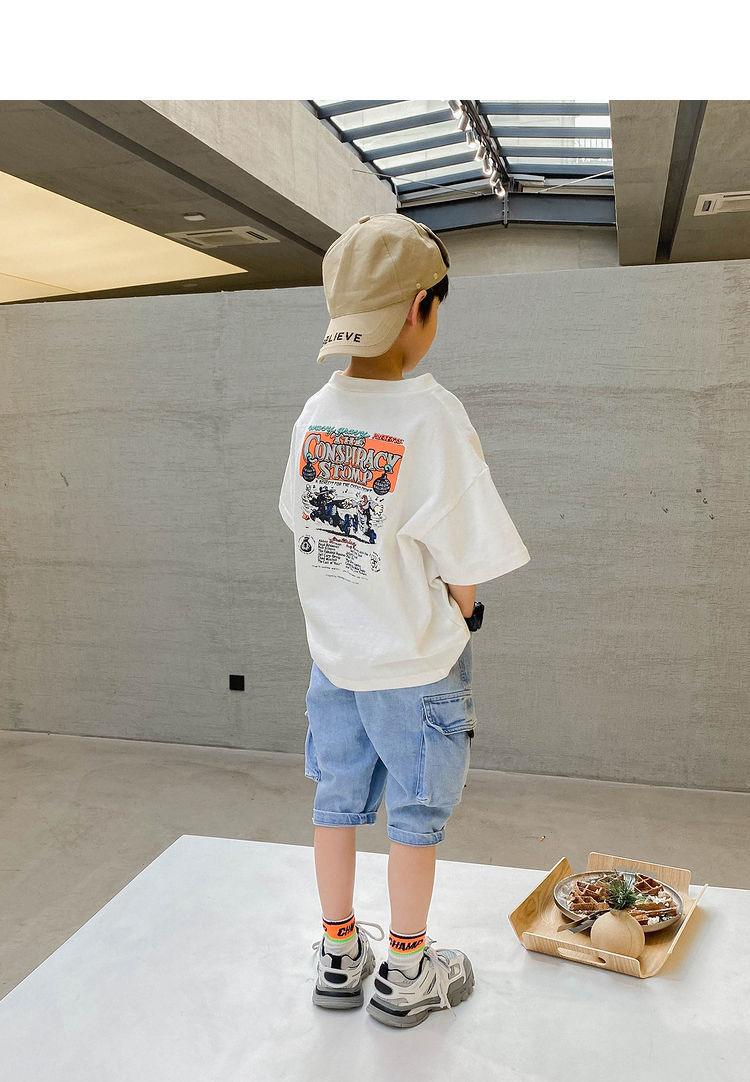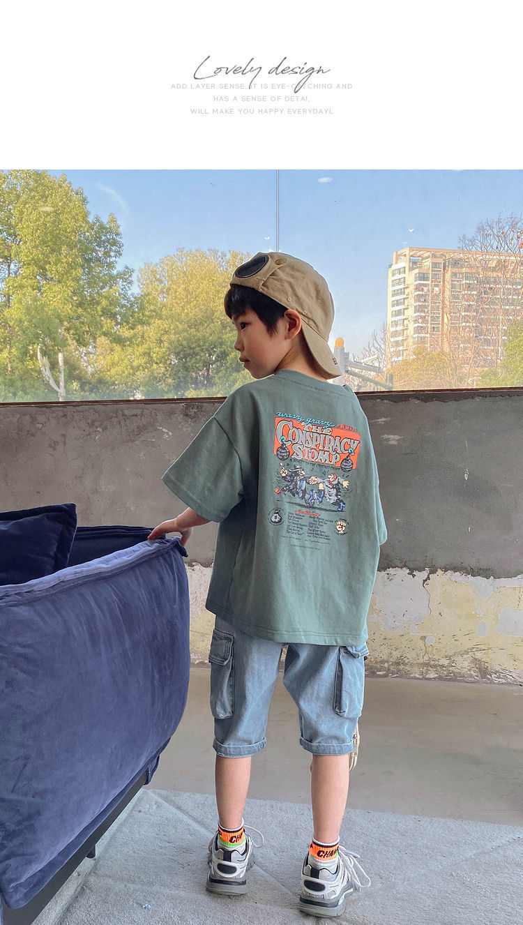 【童装男女短袖t恤,棉质吸汗透气❗️贴肤舒适,轻薄透气】夏季宽松儿童宝宝半袖上衣中小童潮父亲节礼物新年礼盒年货礼盒