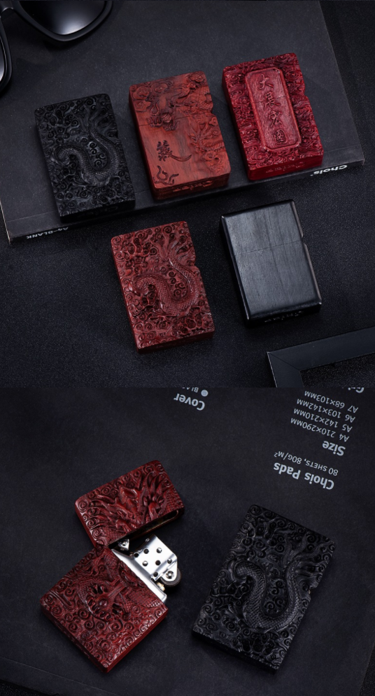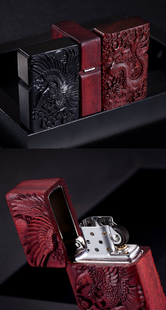 【打火机】首领檀木系列明火煤油打火机锦盒包装