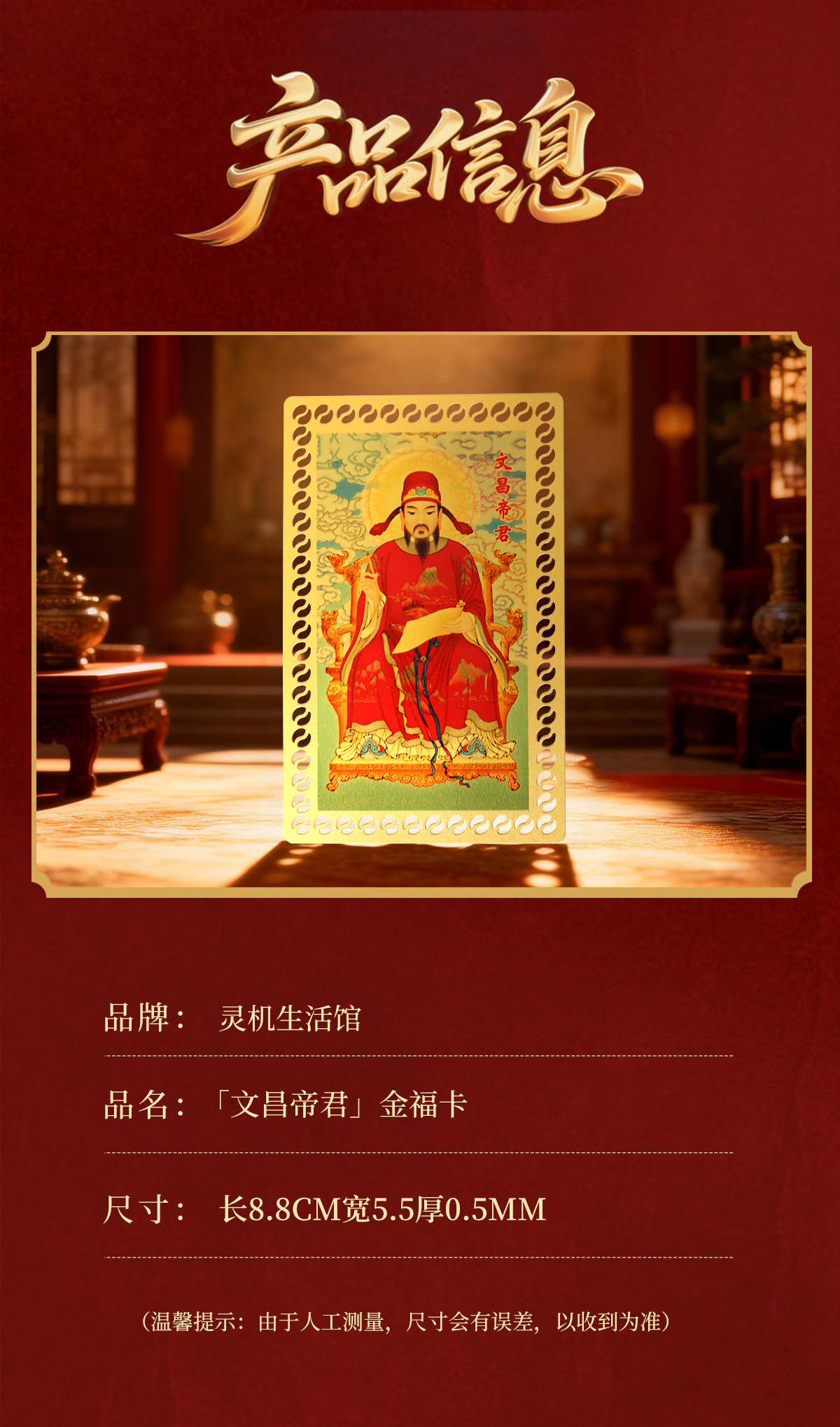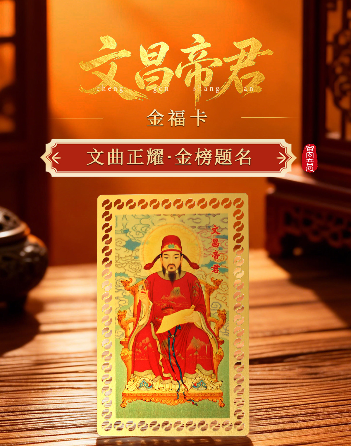 【祈愿吉品】文哲太岁平安福金卡 文哲将军金卡 八方来财金箔卡