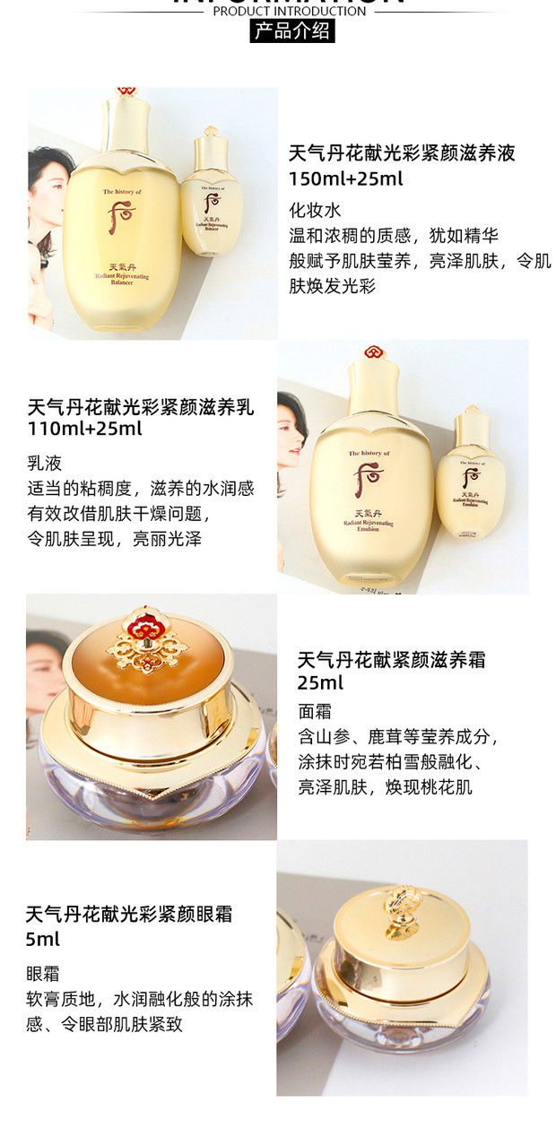 韩国 后Whoo 天气丹花献光彩紧颜水乳7件套装 20年新版免税套装|韩国直邮