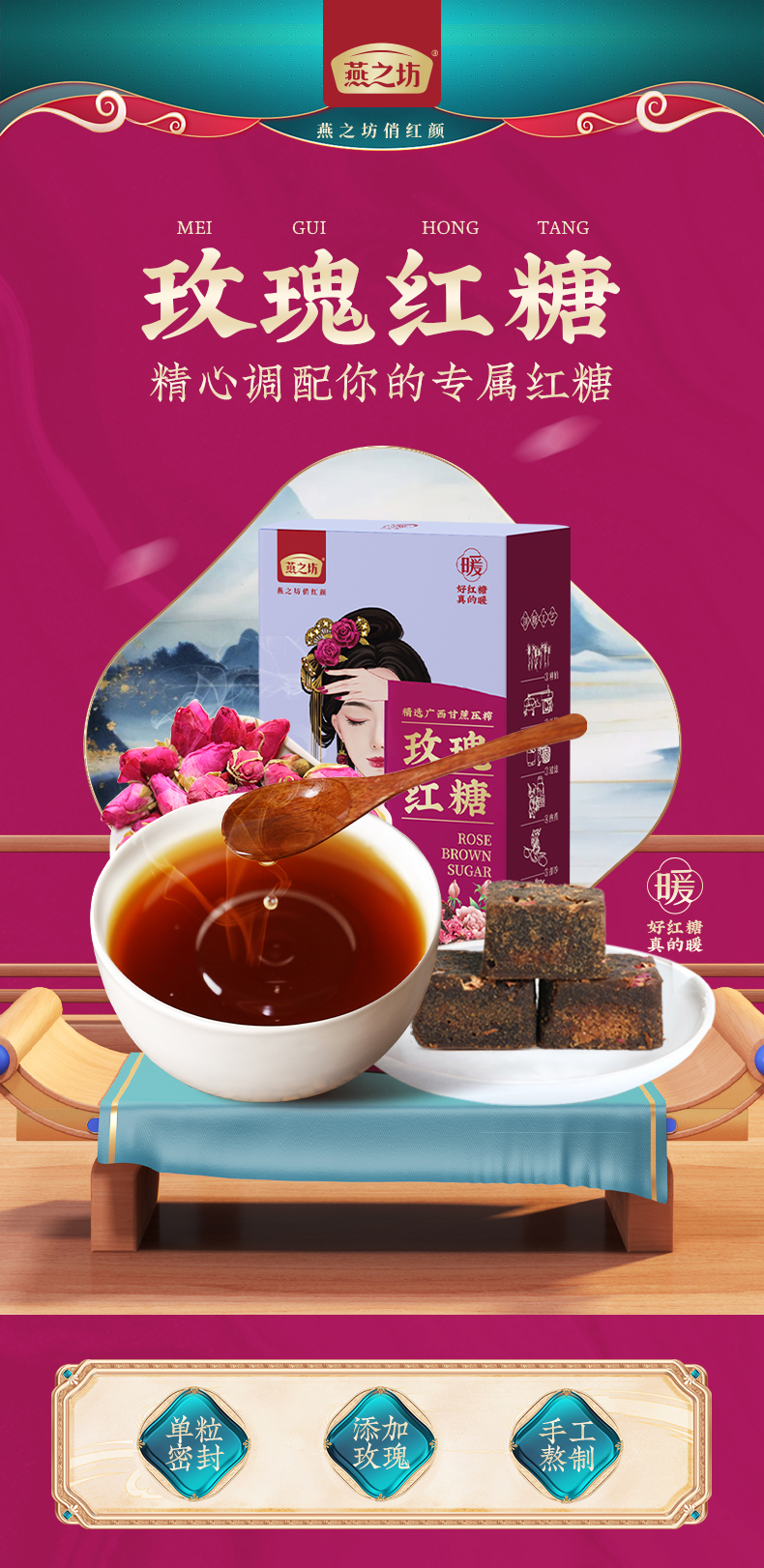 【商城专属】燕之坊玫瑰红糖126g 手工熬制独立小包装