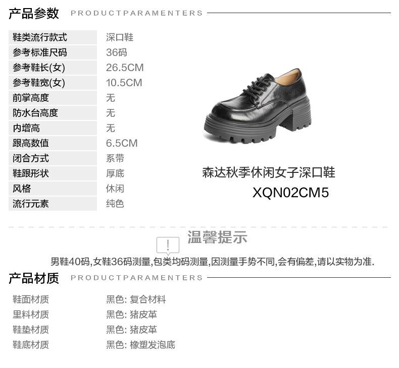 【云粉节】BF楼 森达牛津鞋2025秋季新款厚底粗高跟单鞋XQN02吊牌价899活动价369