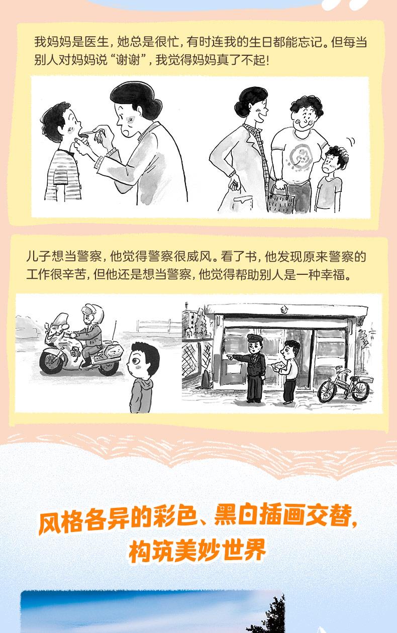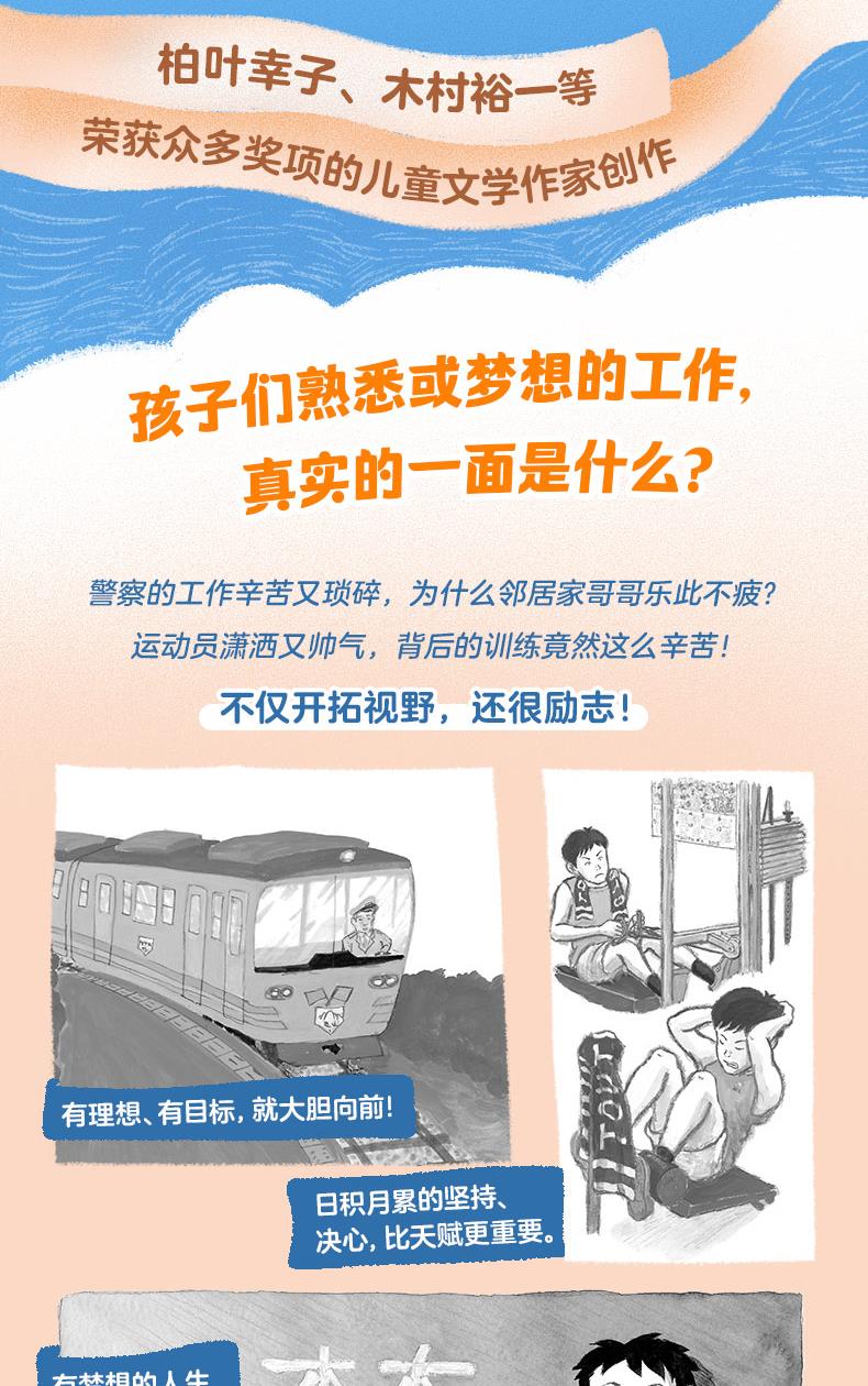 医生家孩子、消防员的邻居、运动员的偶像……分享工作背后的故事。这套书为孩子们提供亲切又自然的契机,了解社会,从了解身边的人开始!工作背后的生活百态,涉及亲子关系、校园生活、人际交往、品质培养等,不仅开拓视野,还很励志。