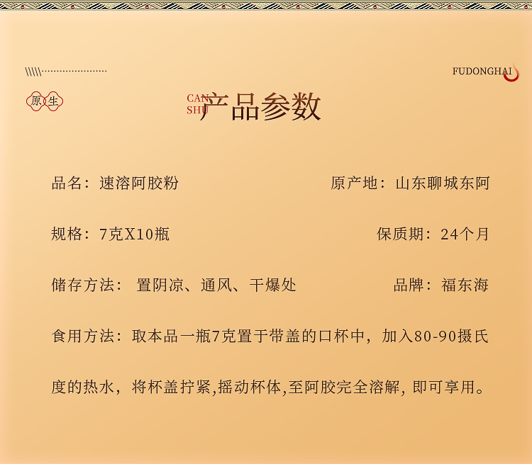 福东海 阿胶速溶粉(颗粒型)7克X10瓶 便携易冲泡 滋养女人补礼气品血 节日送长辈孝敬父母礼盒好礼