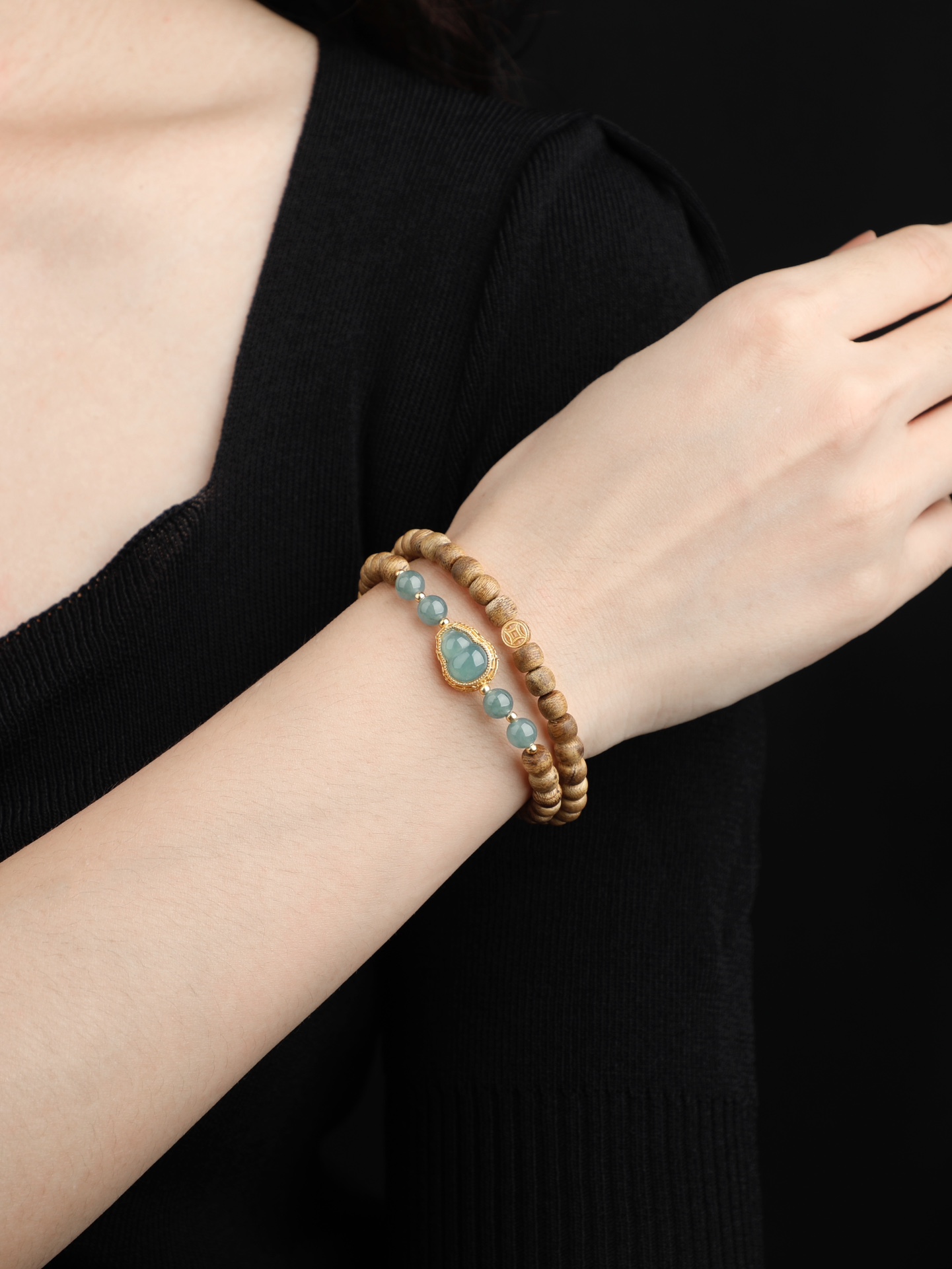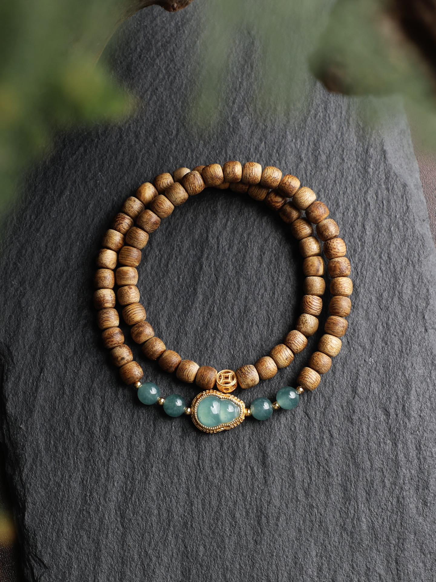 0.6鼓珠翡翠双圈手串天然沉香创意首饰