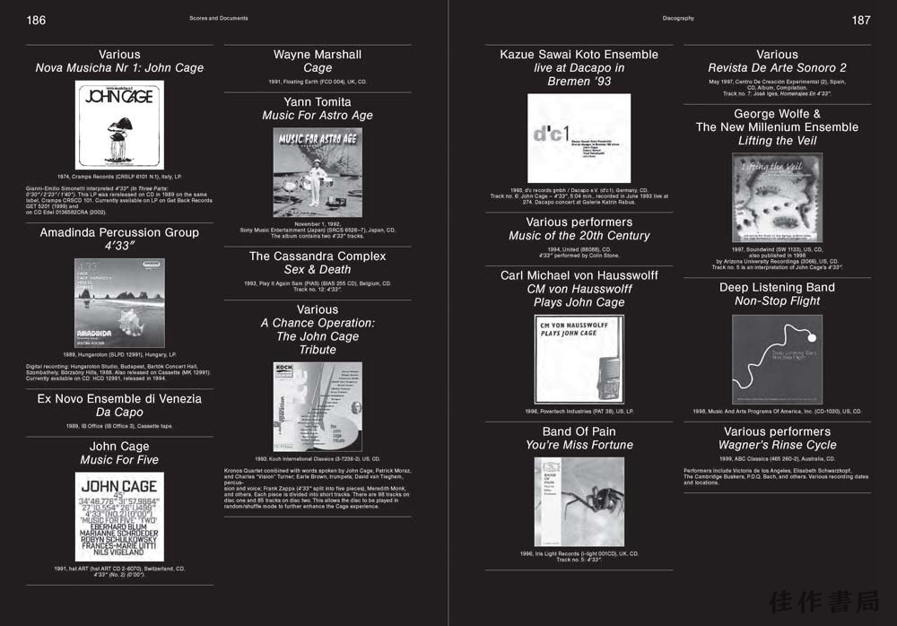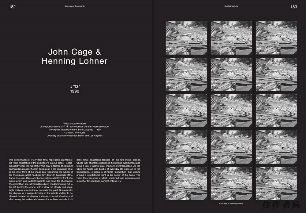 John Cage’s 4’33” (four minutes, thirty-three seconds) premiered on August 29, 1952. This book presents new theoretical writings and artistic works referring to this groundbreaking work, together with original scores and the composer’s own variations, derivatives, and sequels of the ?silent piece? in the years from 1962 to 1992.