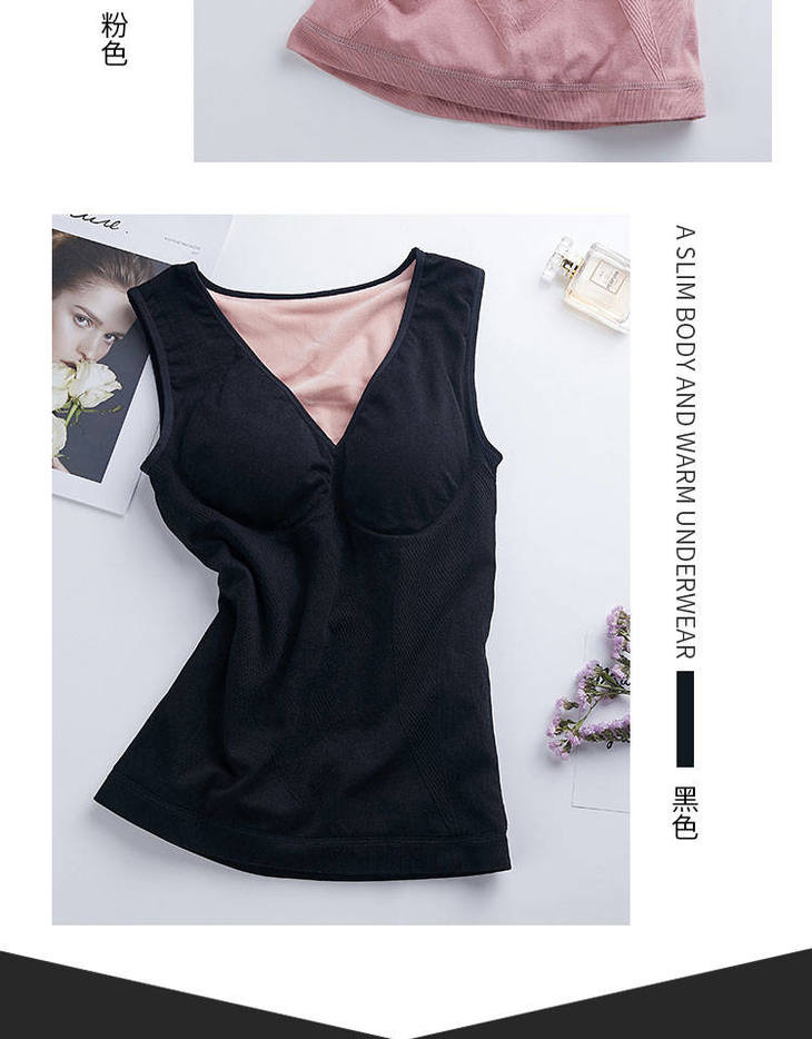 〖自带胸垫〗保暖背心女加绒加厚V领打底衫女士保暖内衣