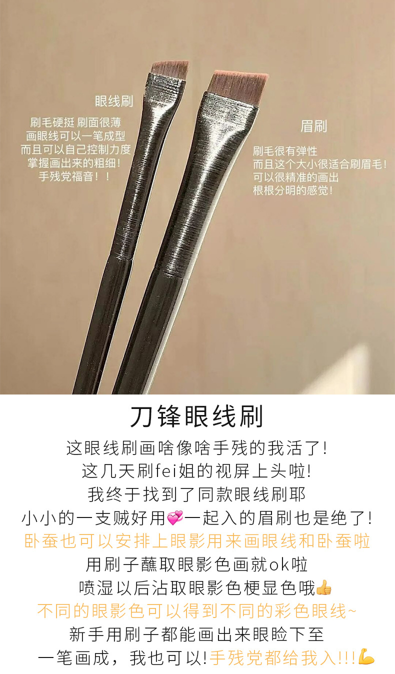 王霏霏同款眉刷刀锋 A102化妆刷卧蚕眉A101斜头眼线刷唇刷勾勒眼线下至镰刀鼻影刷单支