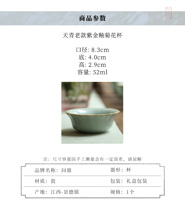 问鼎汝瓷紫金釉经典款天青菊花杯