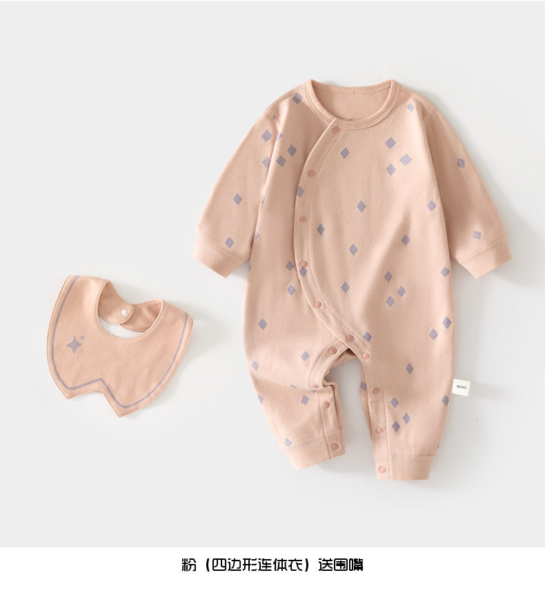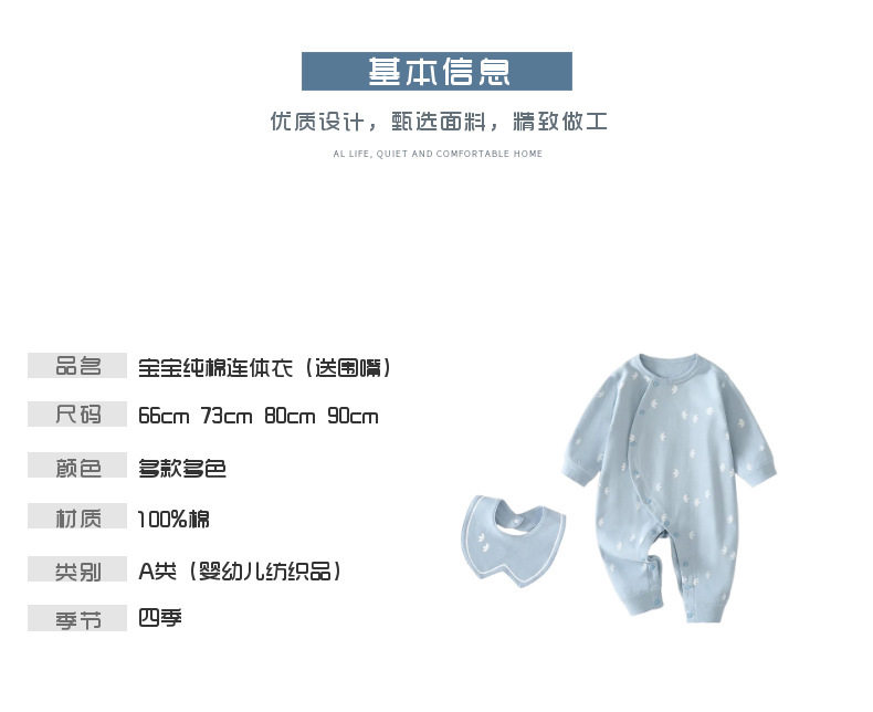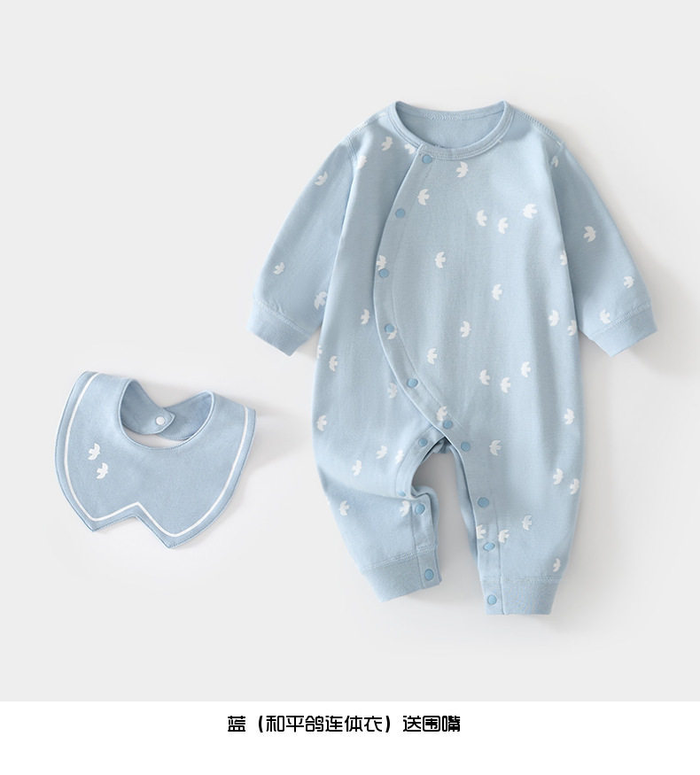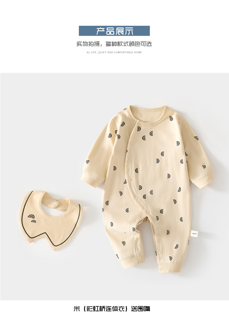 婴儿连体衣偏开宝宝新生儿无骨春秋纯棉哈衣送围嘴婴幼儿童装爬服