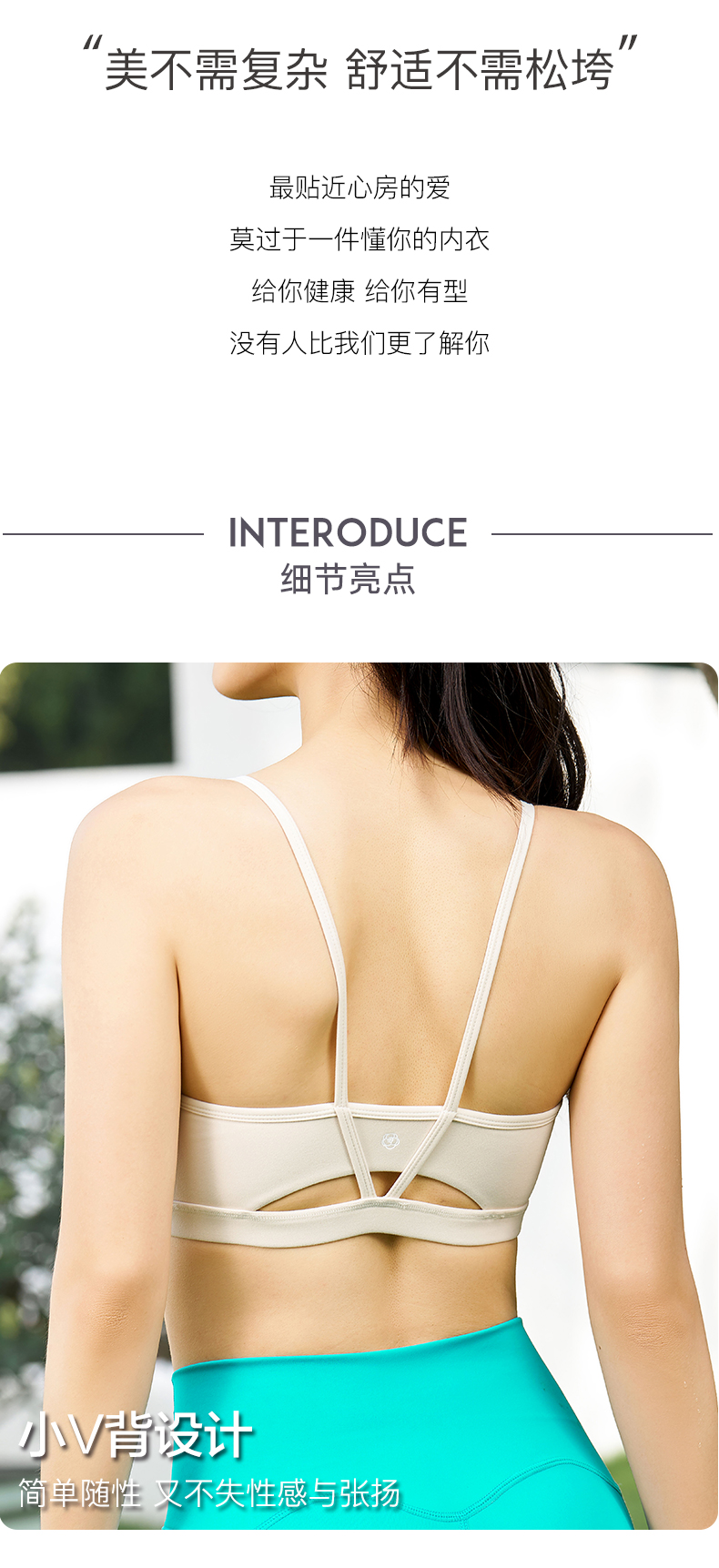 SMOEDOD/水沐伊朵瑜伽运动细肩带文胸小V背带胸垫女士防走光50169