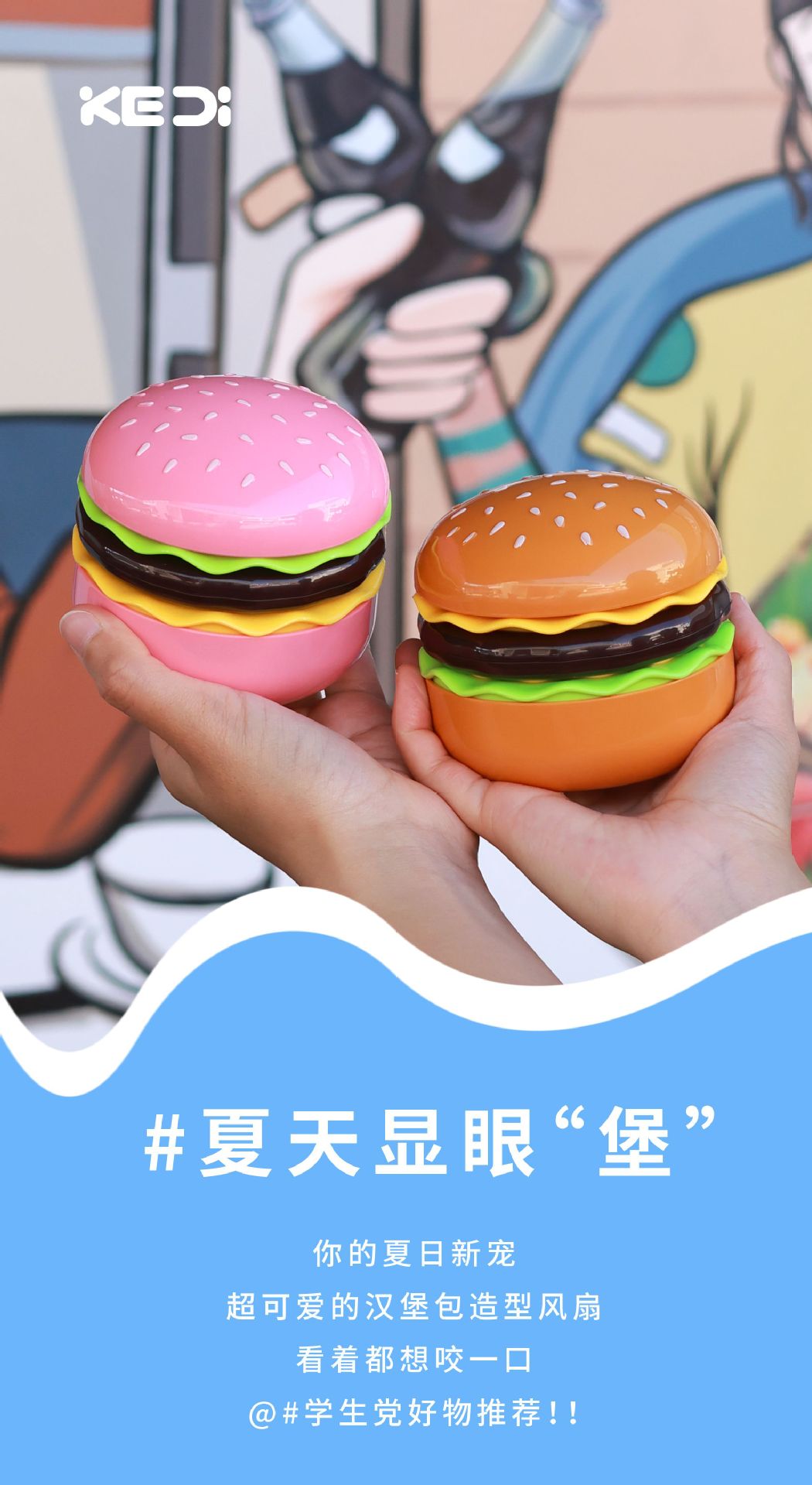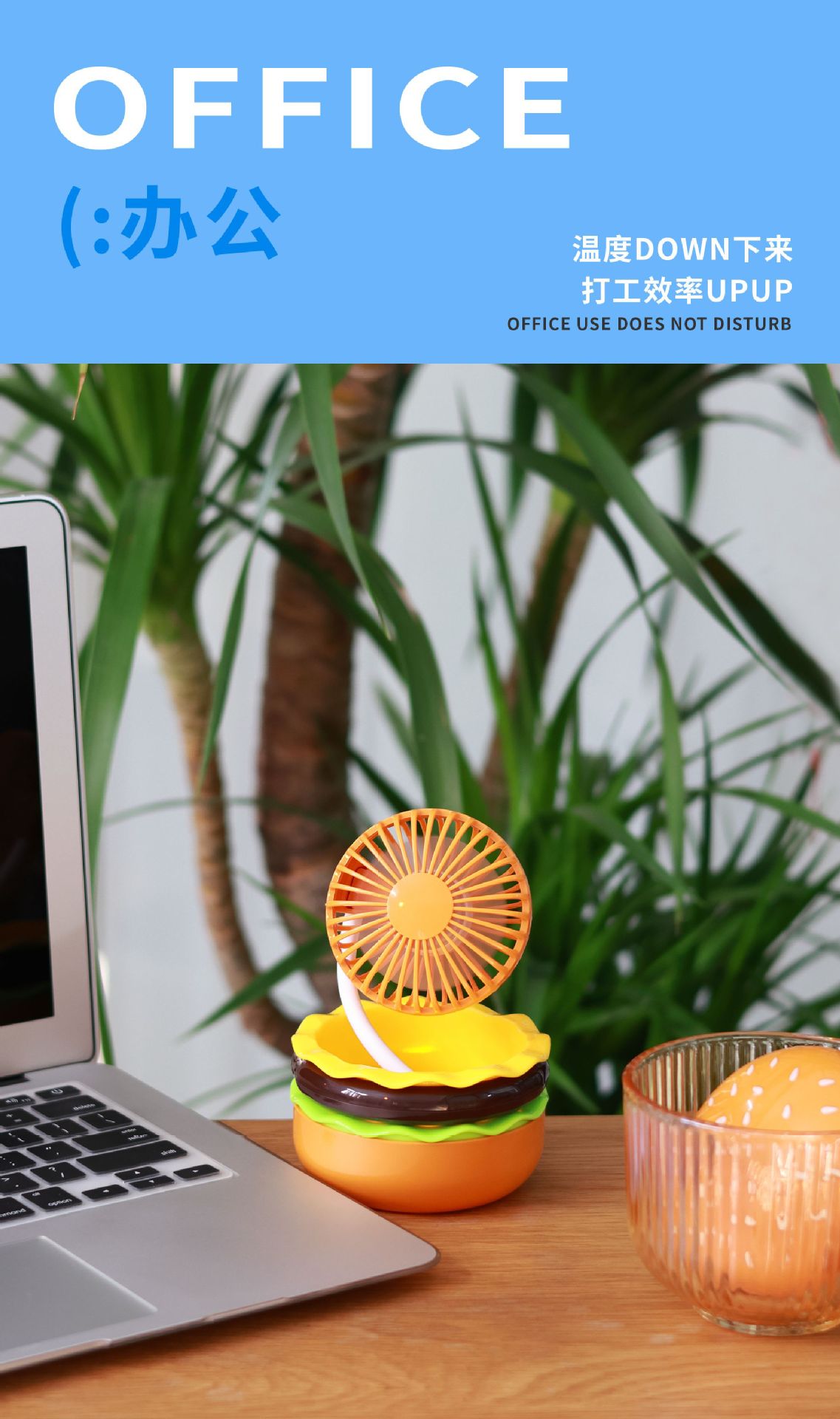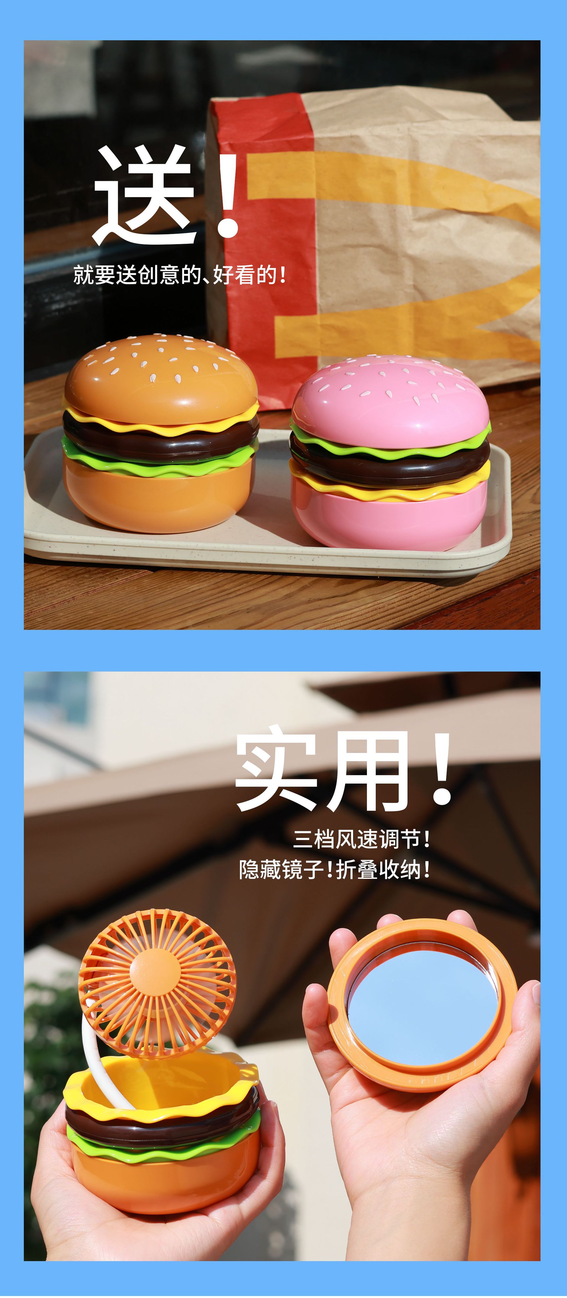 【夏日显眼“堡”!汉堡小风扇】行走的可爱小空调,看着都想咬一口!自带美妆镜,迷你折叠收纳超便携,usb手捧风扇桌面摆件玩具