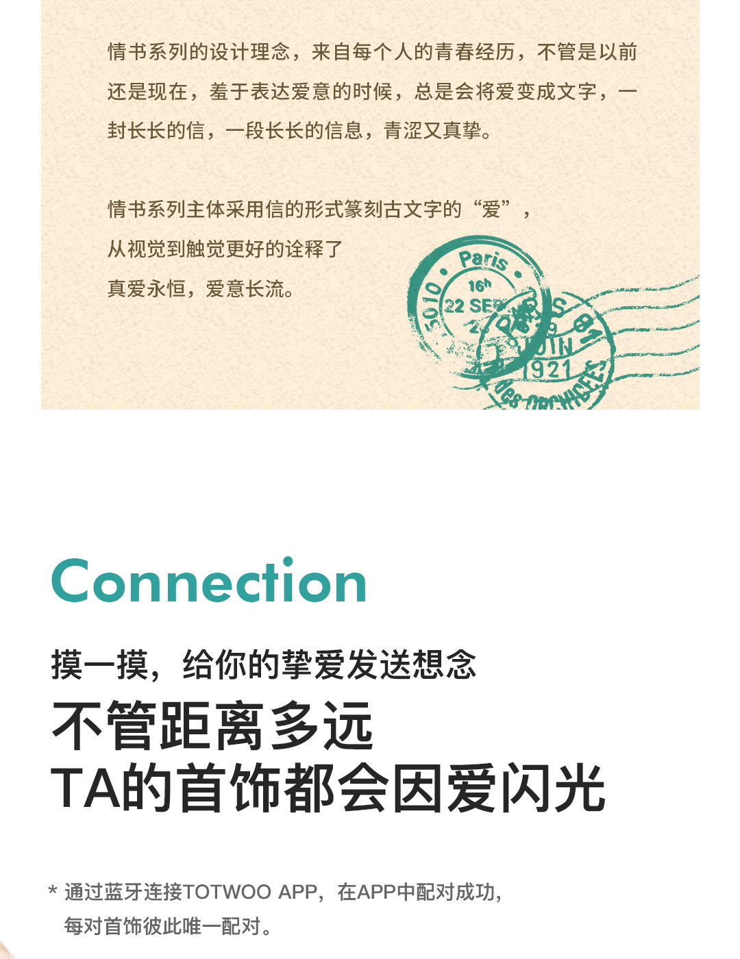 totwoo-真爱感应情书系列手链 礼物送男友女友