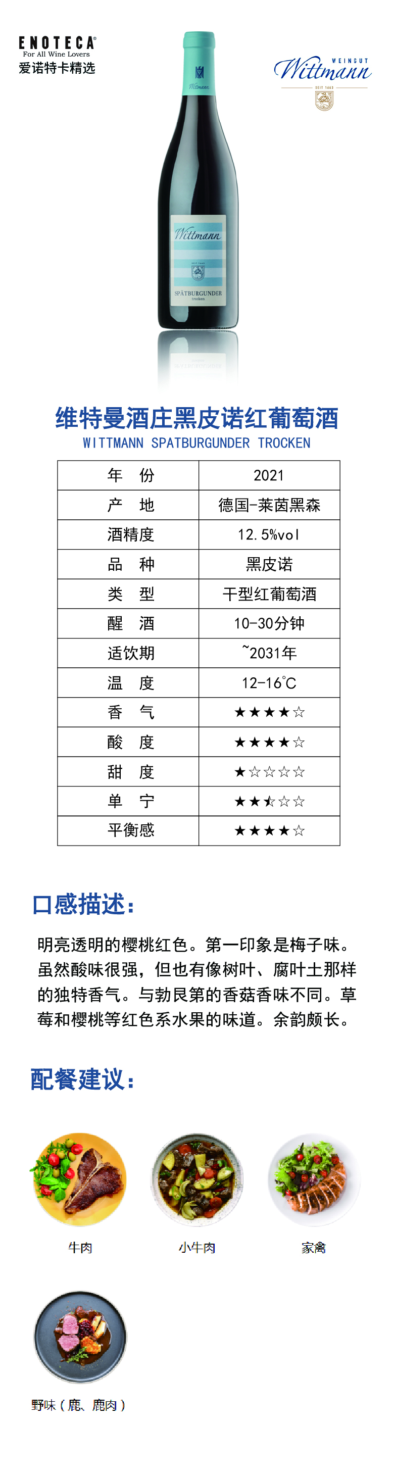 维特曼酒庄黑皮诺红葡萄酒 2021 750ml