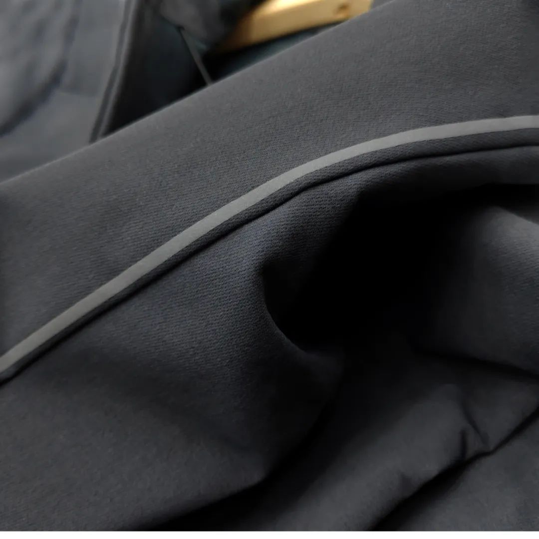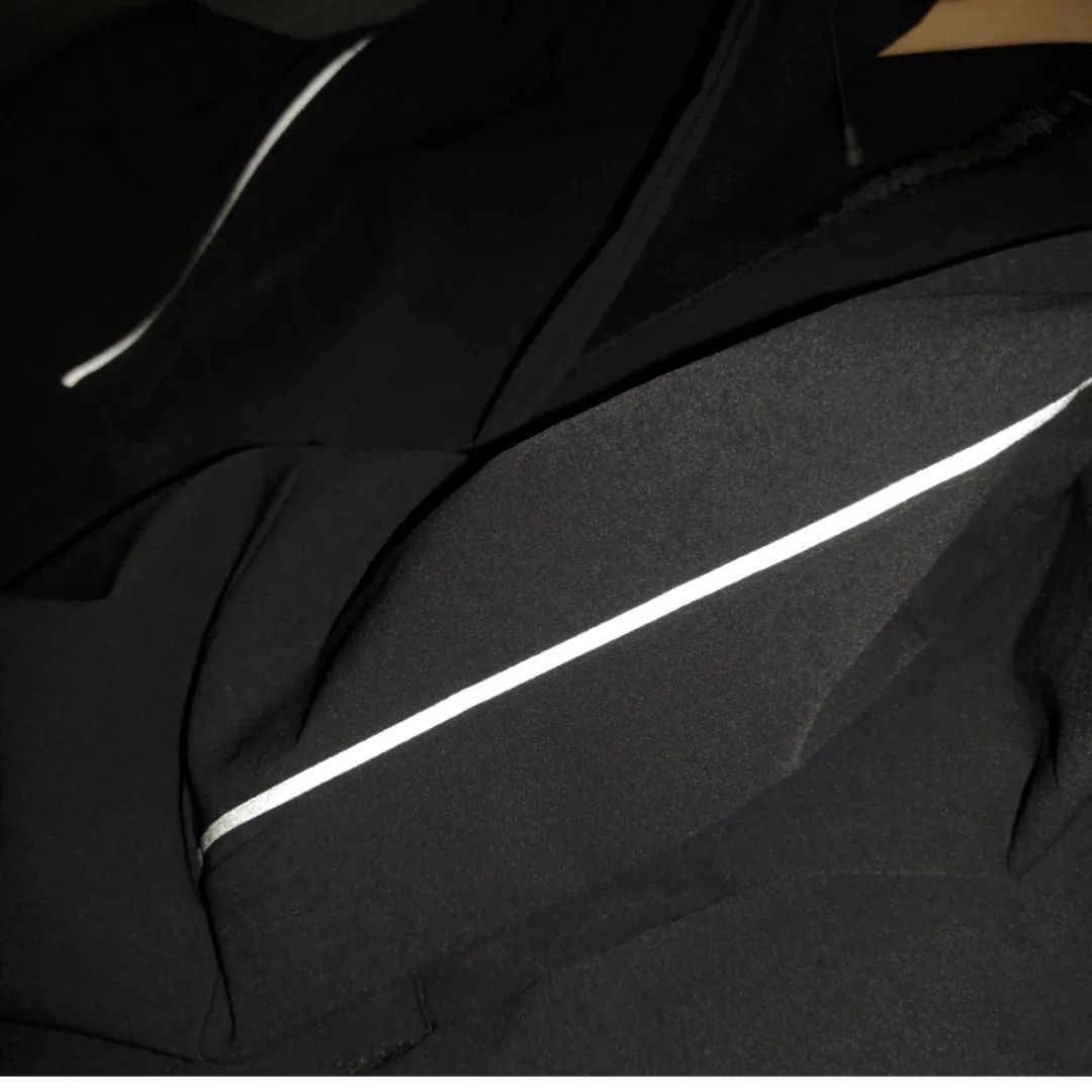 后背及袖子均有反光条,内层压胶工艺