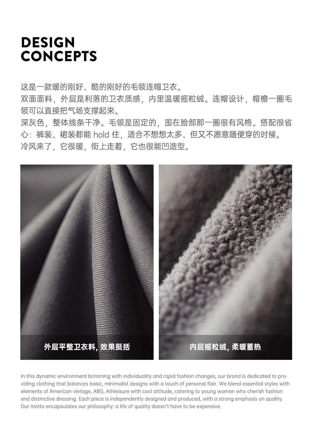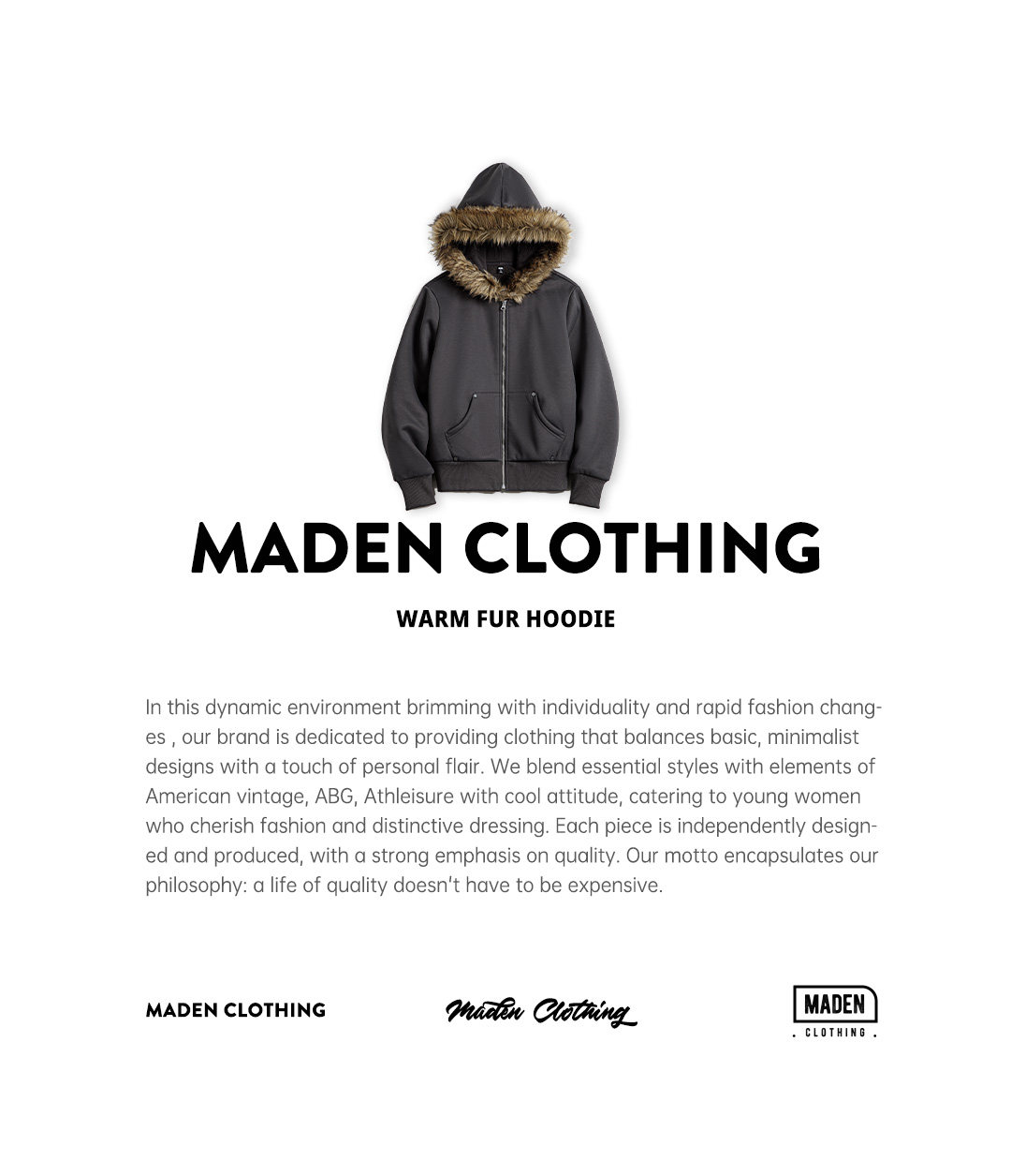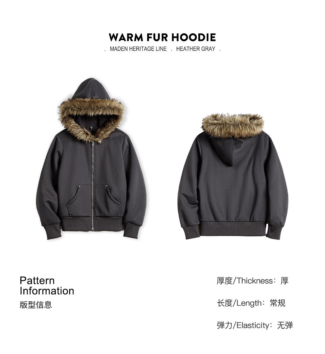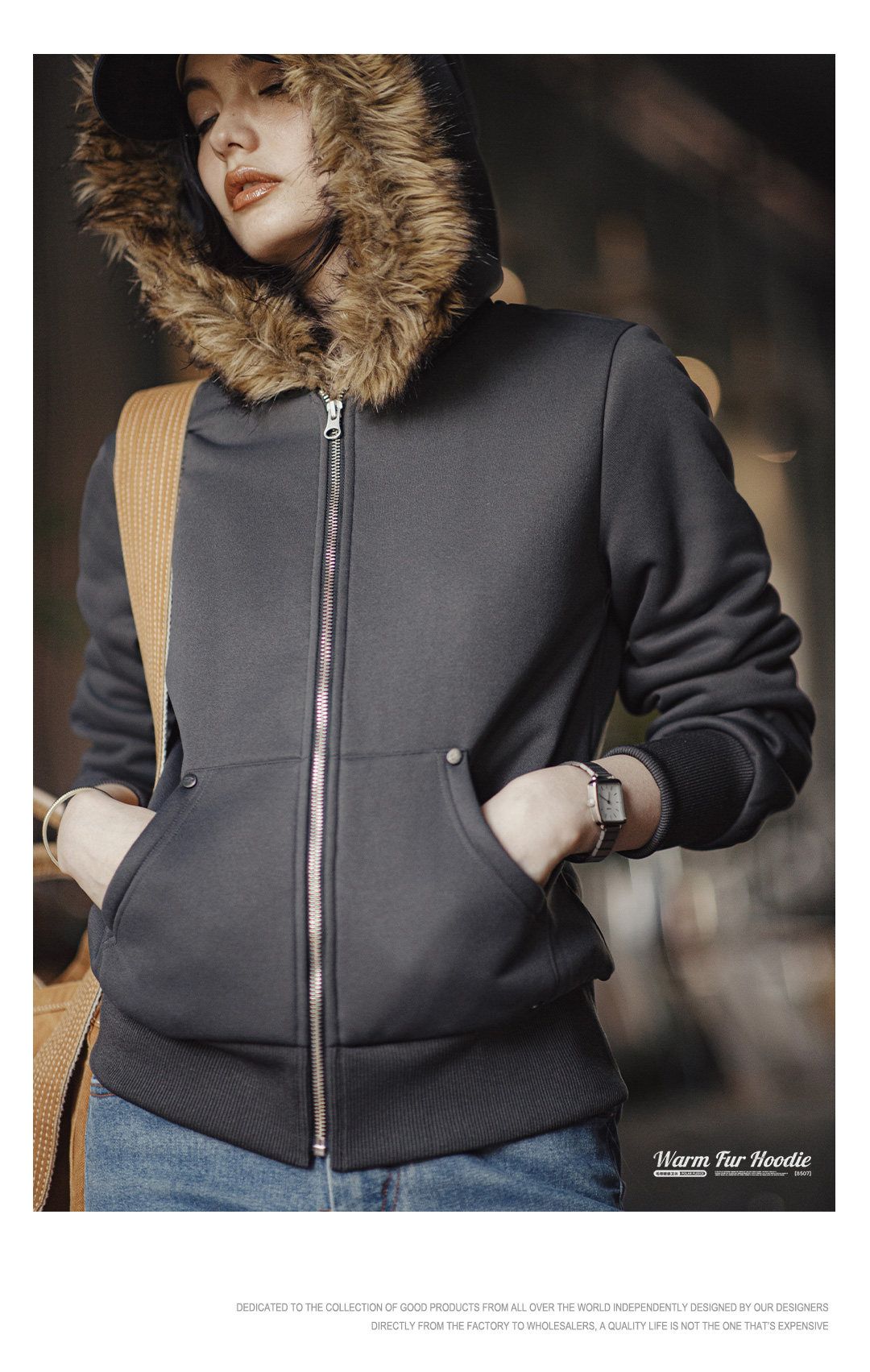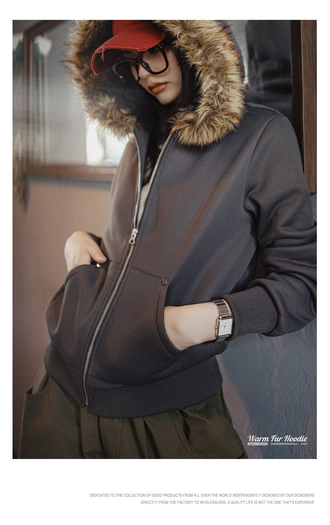 马登美式灰色摇粒绒保暖毛领拉链开衫连帽加厚卫衣外套上衣女秋冬