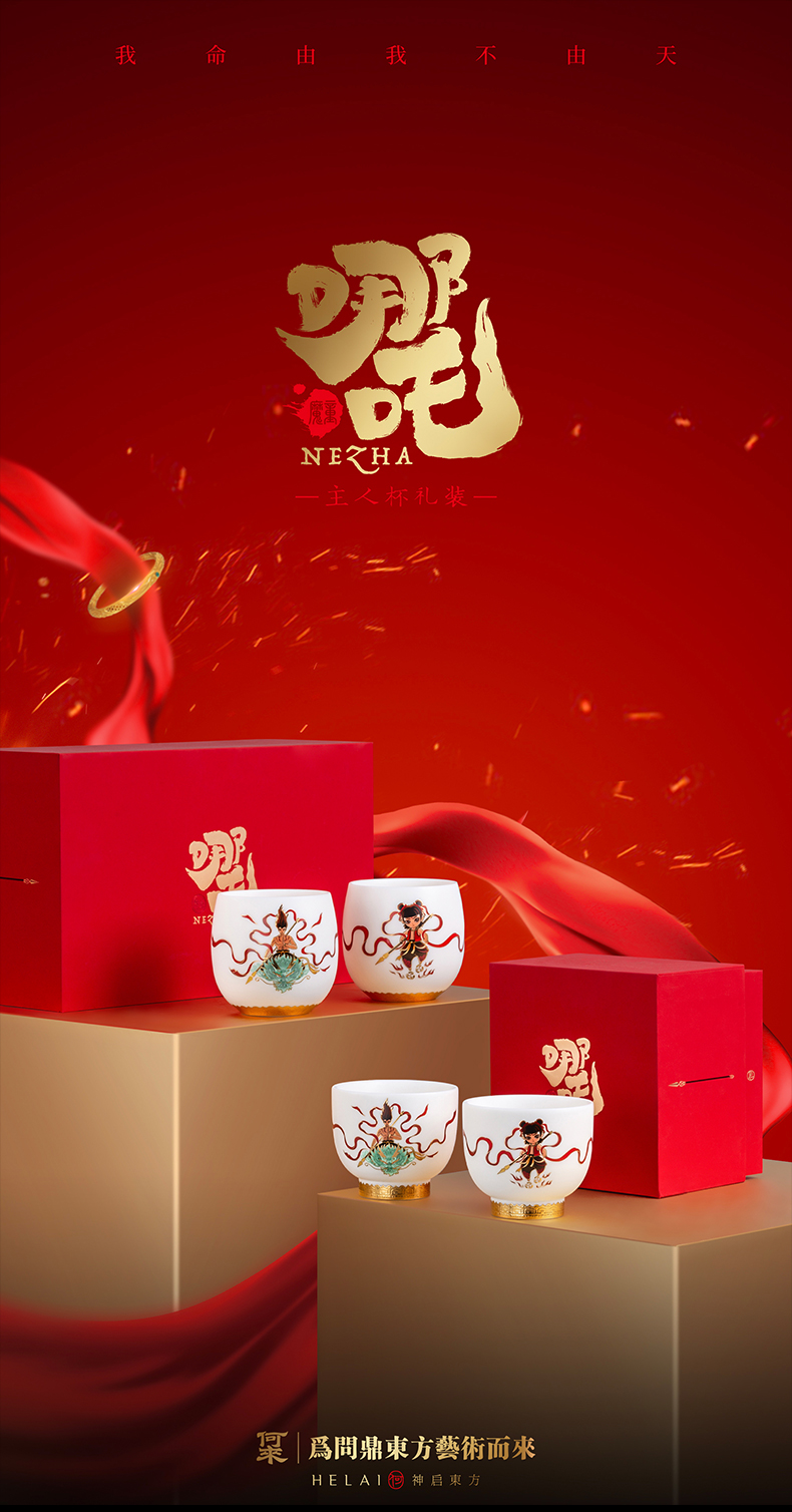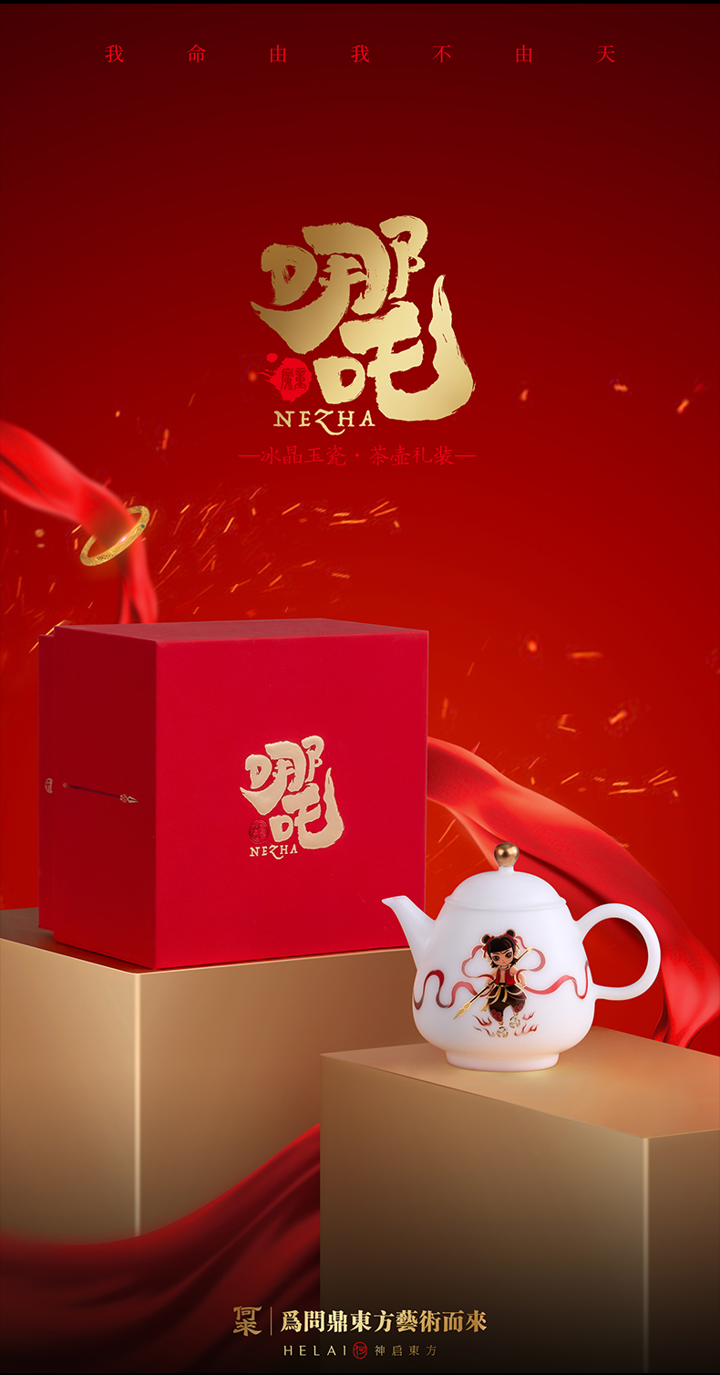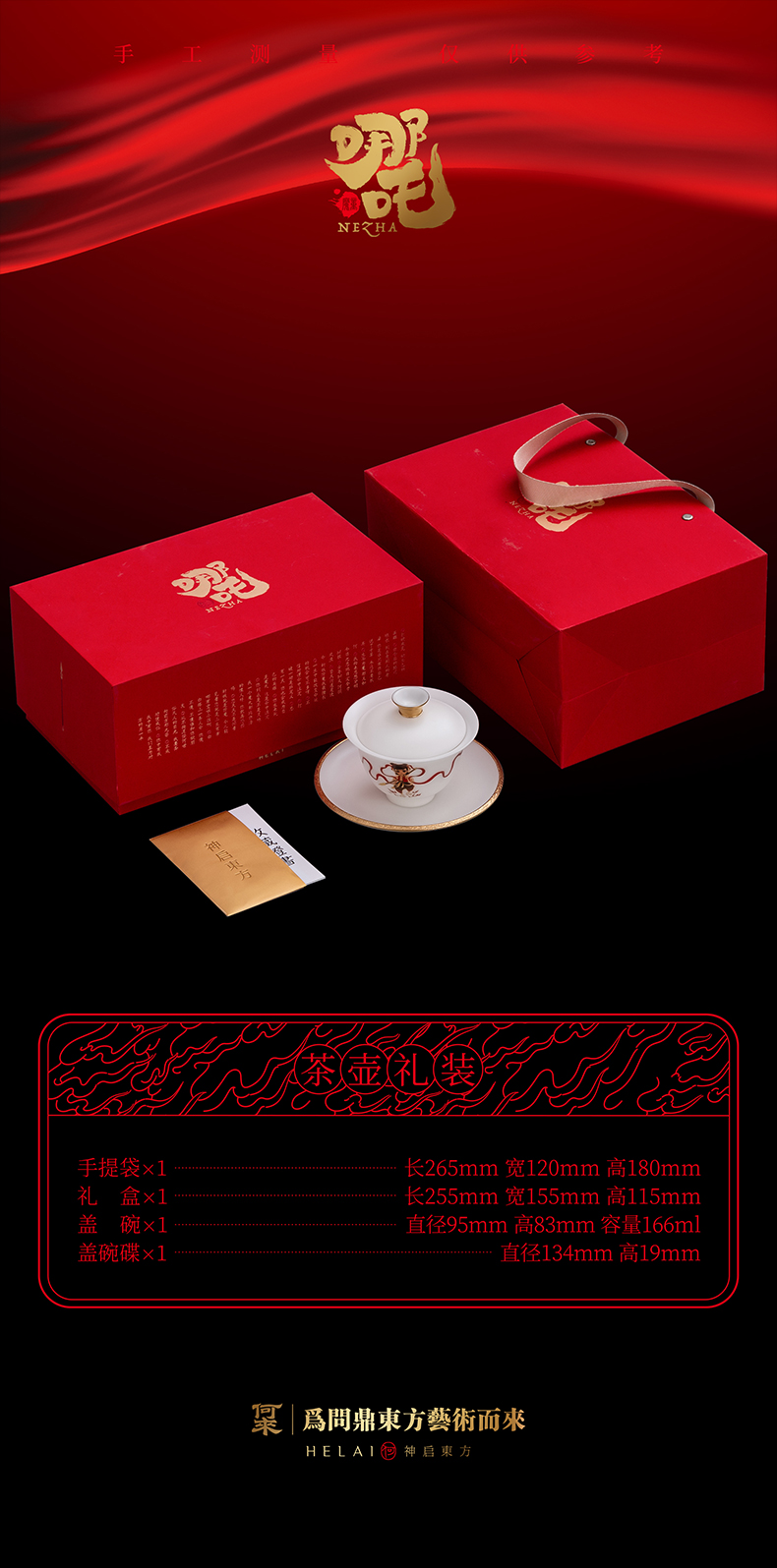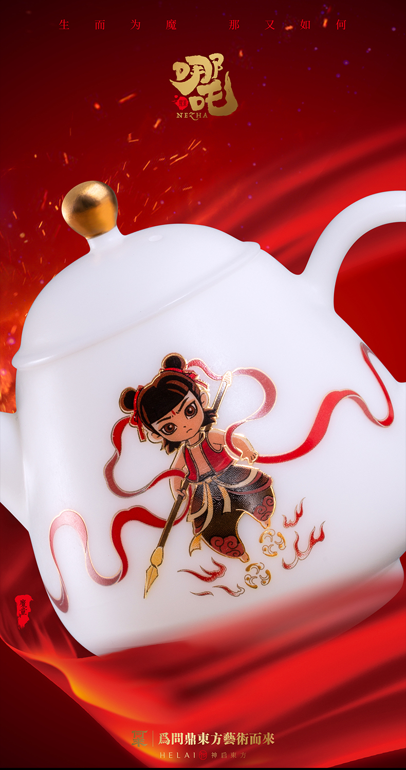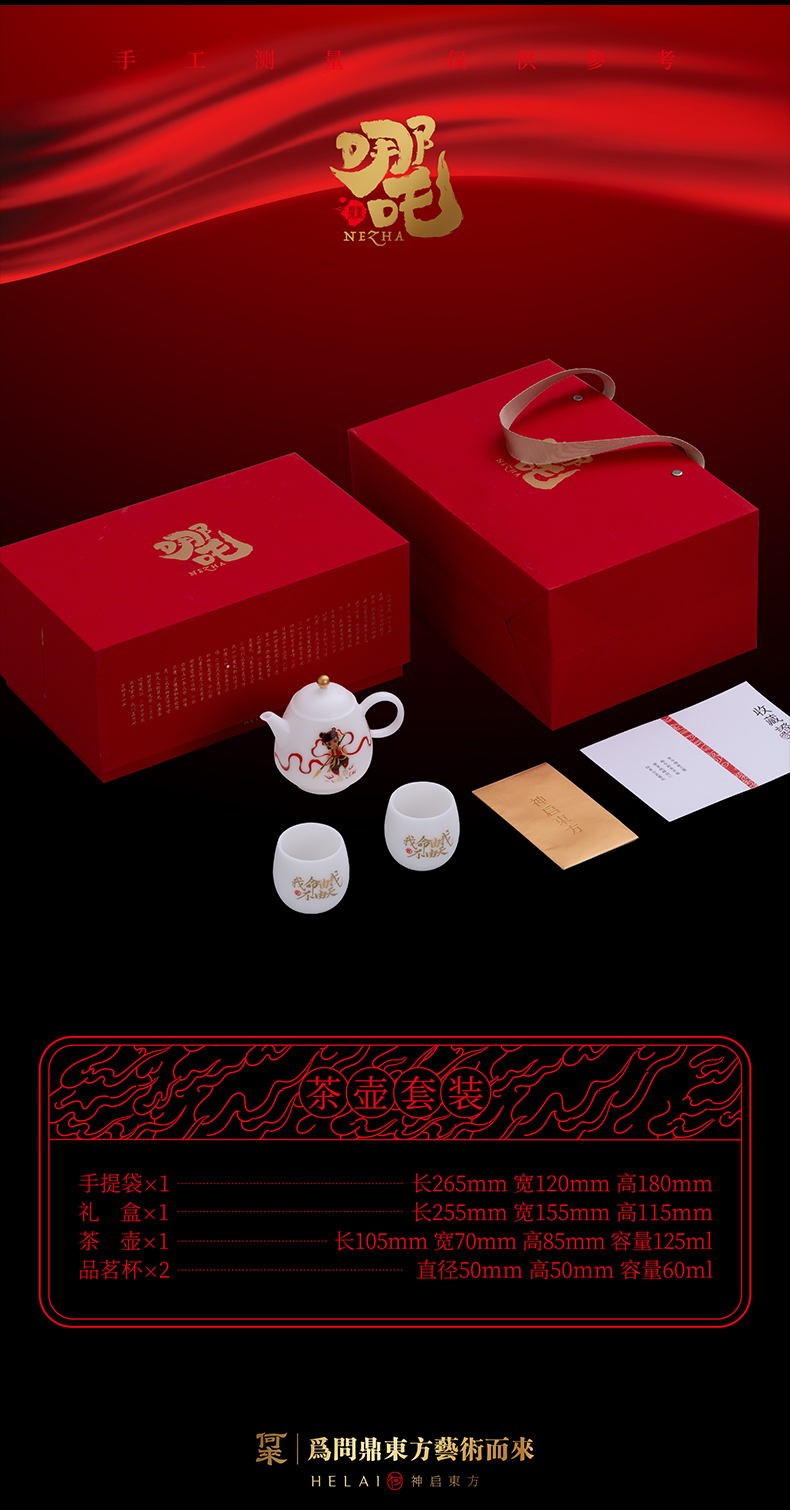 【我命由我不由天】哪吒羊脂玉瓷主人杯盖碗茶壶,苏巧龙大师签章,精美礼盒包装 珍藏品鉴 送礼臻品