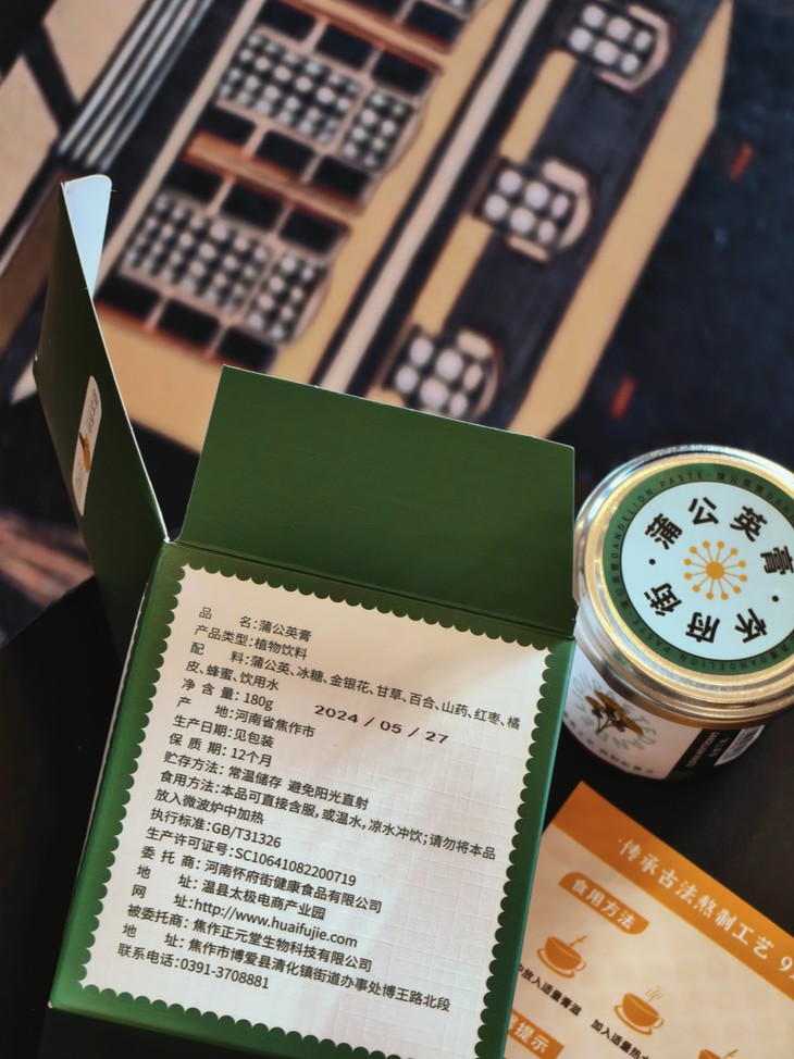 怀府街拥有自己的怀山药和怀菊花种植基地及生产工厂,保证了源头材料以及加工品质,非常专业!怀山药作为常用的补气药,具有补脾养胃、生津益肺、固肾涩精的功效。蒲公英膏,是由多种植物草本组合,包括甘草、红枣、山药和橘皮,共同发挥清热解毒、养阴润燥、健脾和胃等作用,尤其是蒲公英,作为散结的明星成分,还能美容养颜哦!这些成分也使膏方性质温和,适合长期喝喝!